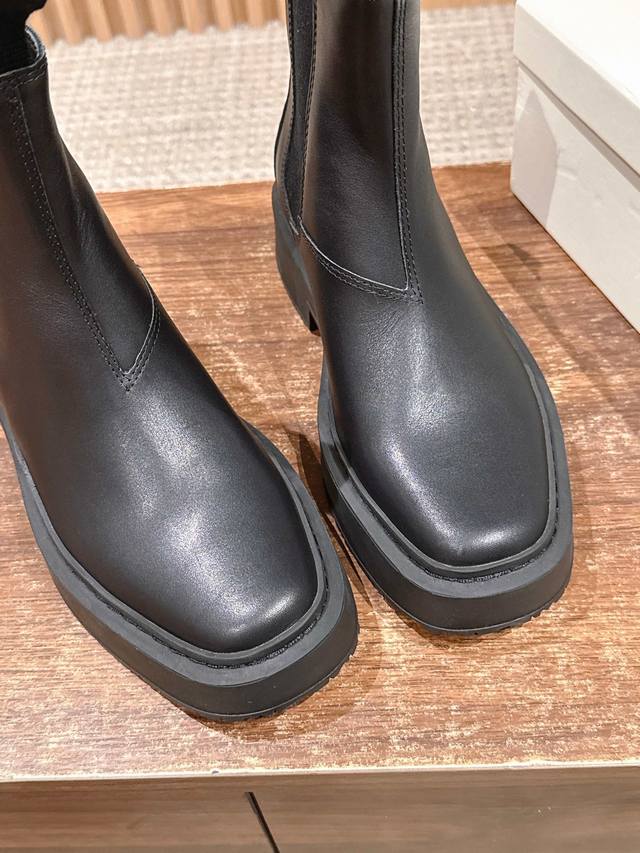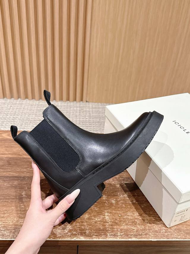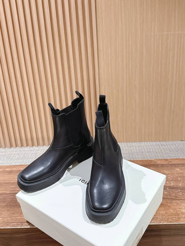 莞产 Icicle之禾 粗跟植揉弹力靴 这款是之禾非常火爆的羊皮弹力靴这个款式是整张皮质拼接款式会比较简约 粗跟弹力羊皮 接近脚口的部位:弹力羊皮革 植鞣系列