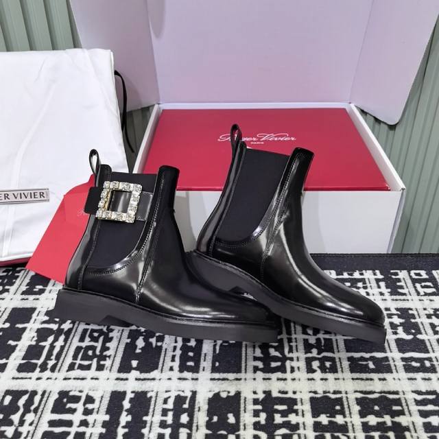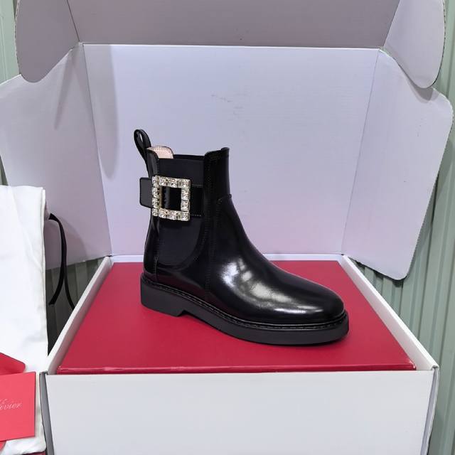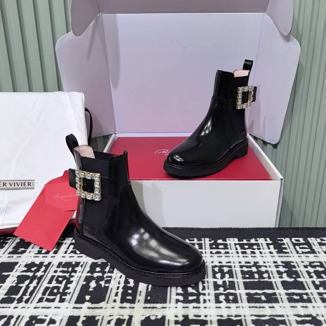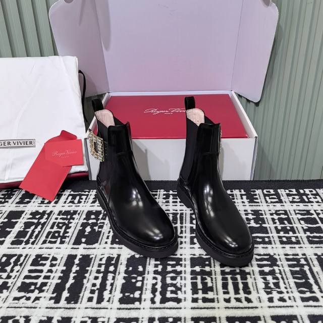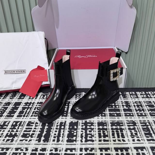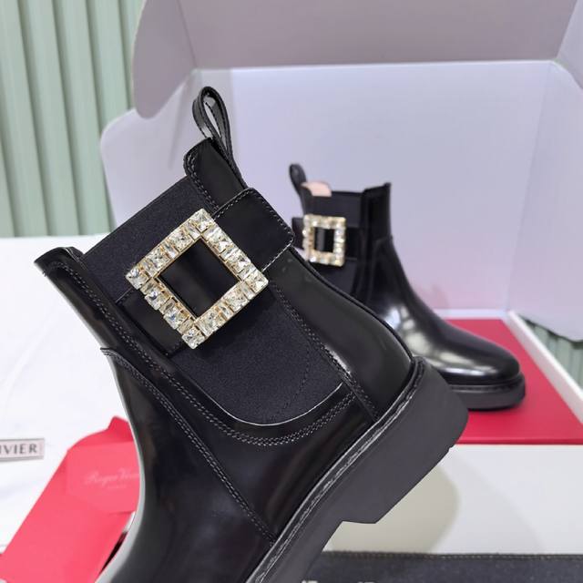 莞产 Roger Vivier 最新 切尔西短靴! Rv维维亚一直在推陈出新,总是一眼就令人过目不忘钻扣系列结合品牌一贯的优雅元素和个性的厚底设计,推出简约休闲