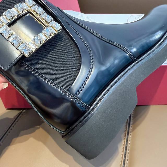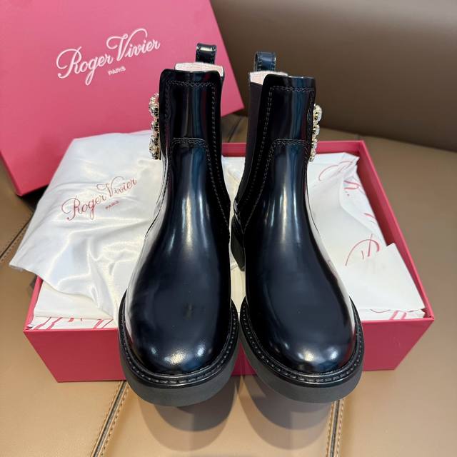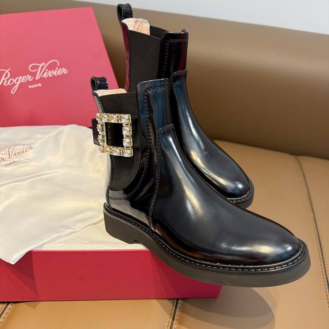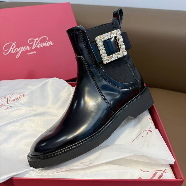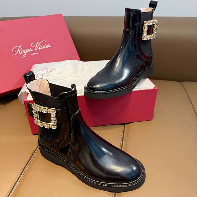 / 莞产 Rv24新款靴子上新即爆火上脚太美 本款切尔西以光滑皮革制成,点缀标志性的闪钻饰扣 经典钻扣设计精时尚~到脚踝的高度 可以搭配超短裤或者长裙视觉上拉高腿线