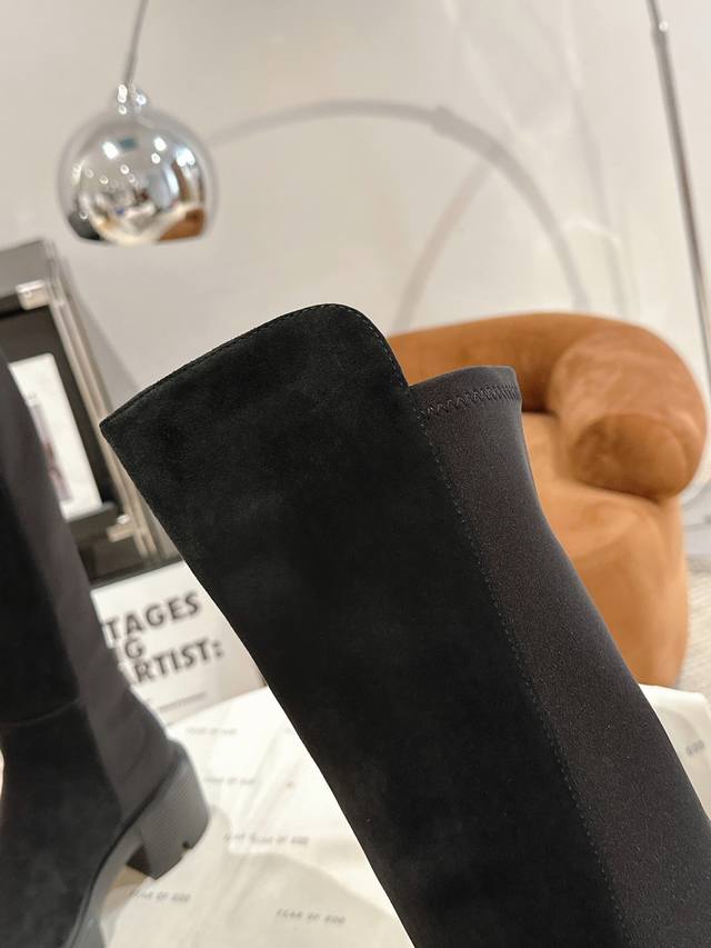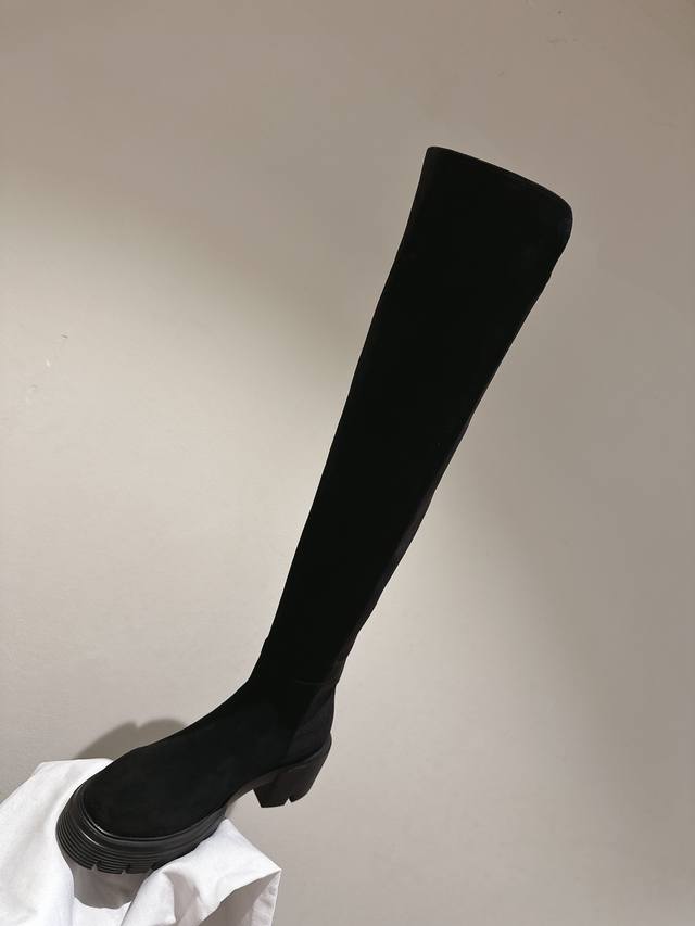 莞产 Stuart Weitzman Soho及膝靴加入抢眼的Soho沟纹鞋底 为经典及膝靴增添一抹现代的都市风范。60毫米的沟纹鞋底符合当下的时尚潮流,同时又
