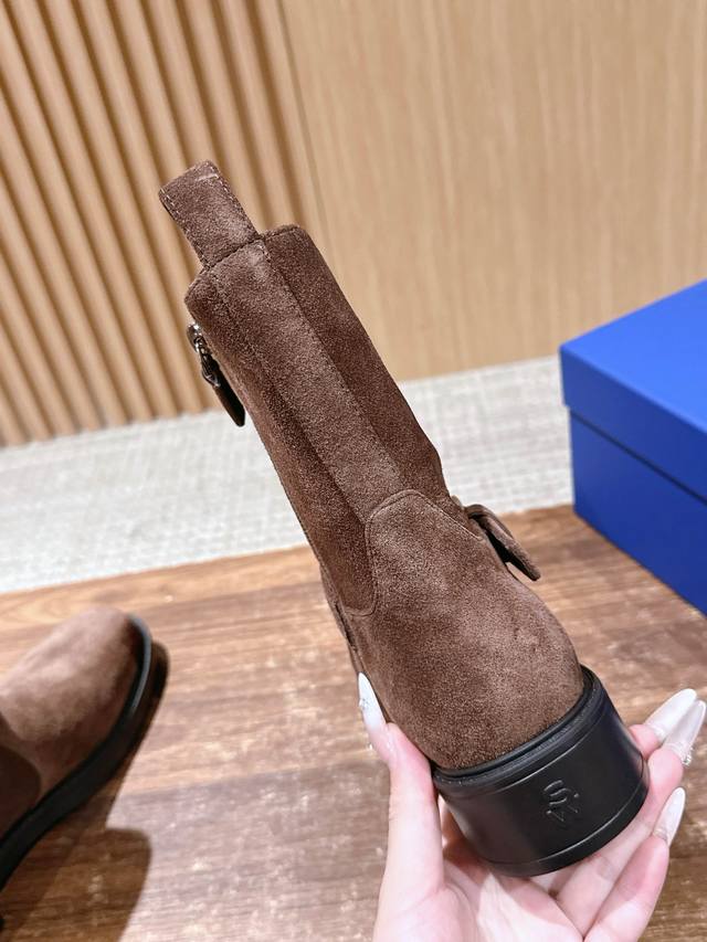 莞产 Stuart Weitzman Sw粗跟内侧拉链切尔西靴 DDD 没有哪个女生不爱Sw 每一款单品总能给人们带来不一样的时尚气息 从奥斯卡红毯上的频繁出镜率就不难看出 绝对是众多当红明星的最爱 不仅红毯需要她,简约而不简单的设计风格 绝对是秋冬季必入的鞋款!! DDD 靴子兼具高定时尚风格与实用功能性,采用牛皮面料,提升舒适贴合感。这款靴子属于品牌经典靴系列。中筒靴拉长腿部线条非常好,可修饰各种腿型,拉长腿部比例。 DDD 经典设计专为舒适贴身打造亚洲定制舒适楦型,经过上百道工艺打磨,让您每一步都轻