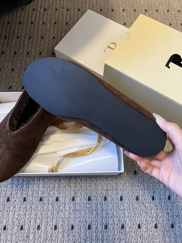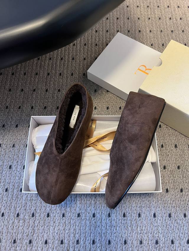 莞产 DDD The Ro* 简约风加绒平底单鞋休闲鞋 DDD 风格极简高级,属于The Row标志性的低调质感路线。材质分皮革与麂皮绒,触感细腻且质感显贵。内里加绒,包裹性强,兼顾保暖与舒适脚感。 DDD 鞋型是包跟设计,贴合脚跟不易掉,居家、轻外出都适配。软底设计,走路轻便无负担,久穿也不压脚。 颜色都是低饱和色系,百搭不挑穿搭风格。一脚蹬款式,穿脱方便又利落。 DDD 鞋面:进口混种羊皮 DDD 内里:澳洲羊羔毛 DDD 大底:原版开模大底 DDD 增高:2Cm DDD Size :35-40码 4
