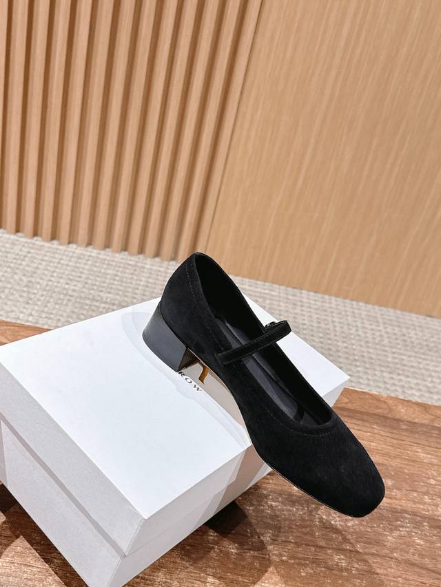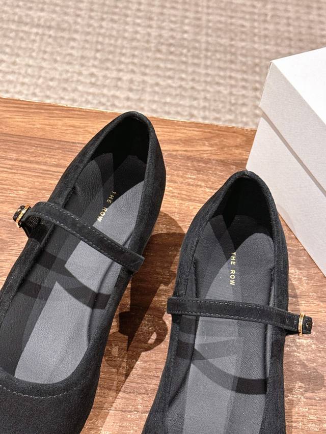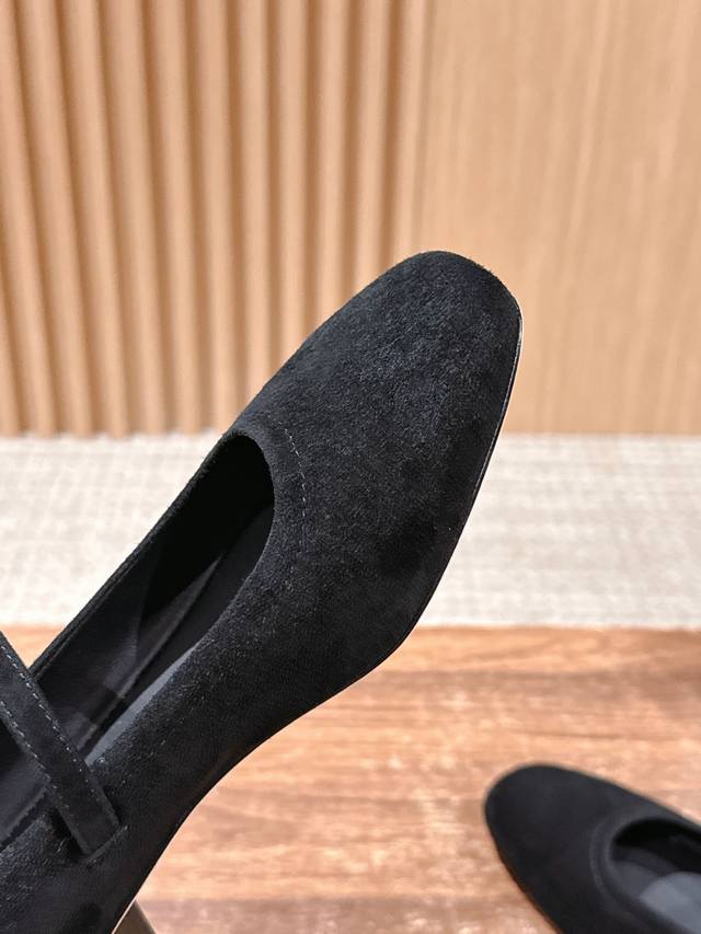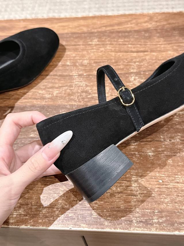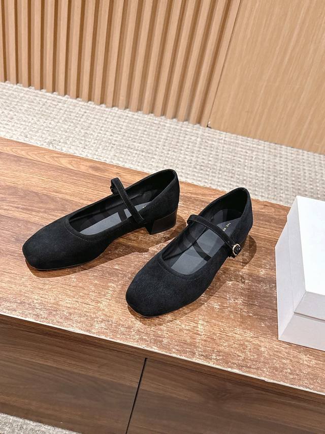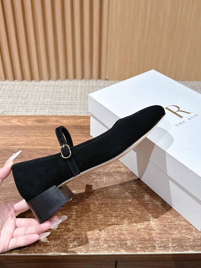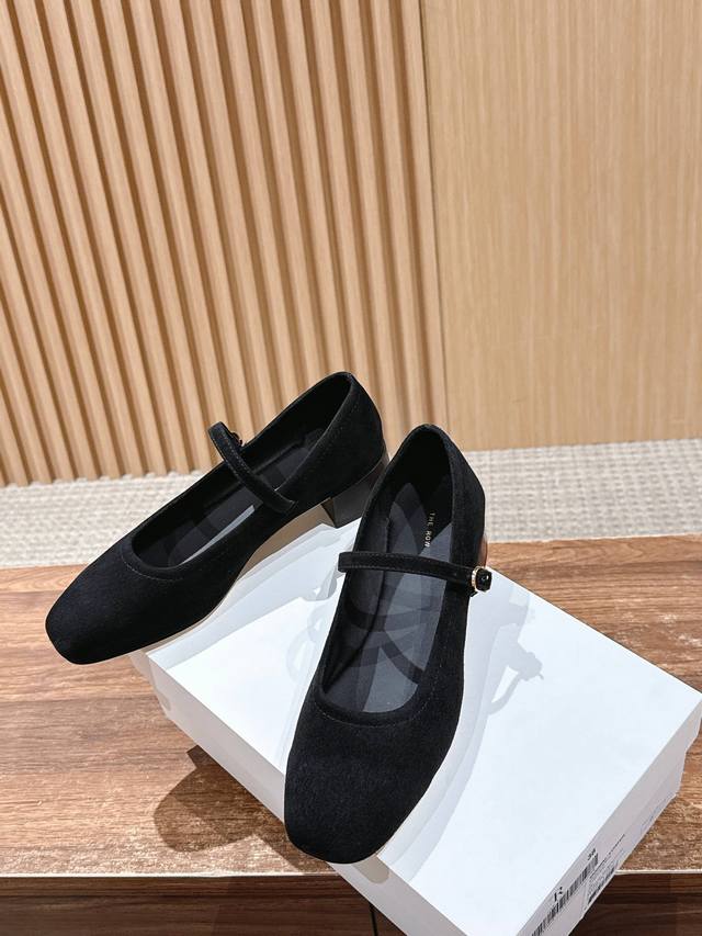 莞产 The Row新款复古浅口高跟款玛丽珍鞋一字带单鞋 本款玛丽珍鞋以小牛反绒皮制成,设有带按扣扣带,3.5粗跟平稳舒适。款式斯文淑女,优雅又不失活泼。 一字