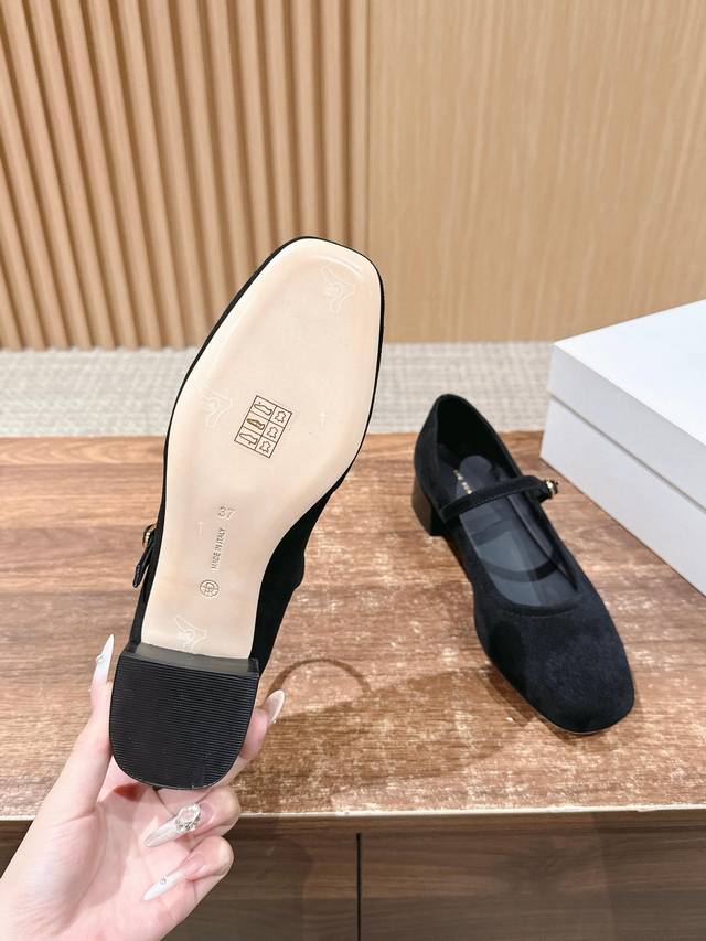 莞产 The Row新款复古浅口高跟款玛丽珍鞋一字带单鞋 DDD 本款玛丽珍鞋以小牛反绒皮制成,设有带按扣扣带,3.5粗跟平稳舒适。款式斯文淑女,优雅又不失活泼。 DDD 一字带系列,穿脱方便,包容性强,不挑脚型,四季好搭配!简单大方,超百搭,明星同款通勤单鞋,舒适与优雅并存,本季不容错过的款式! DDD 面料:进口牛反绒 DDD 内里:柔软羊皮,舒适度直接拉满,穿一整天也不会累脚! DDD 大底:真皮大底,高感级十足,超级奢华的艺工设计! DDD 跟高:3.5Cm DDD 尺码:35 36 37 38