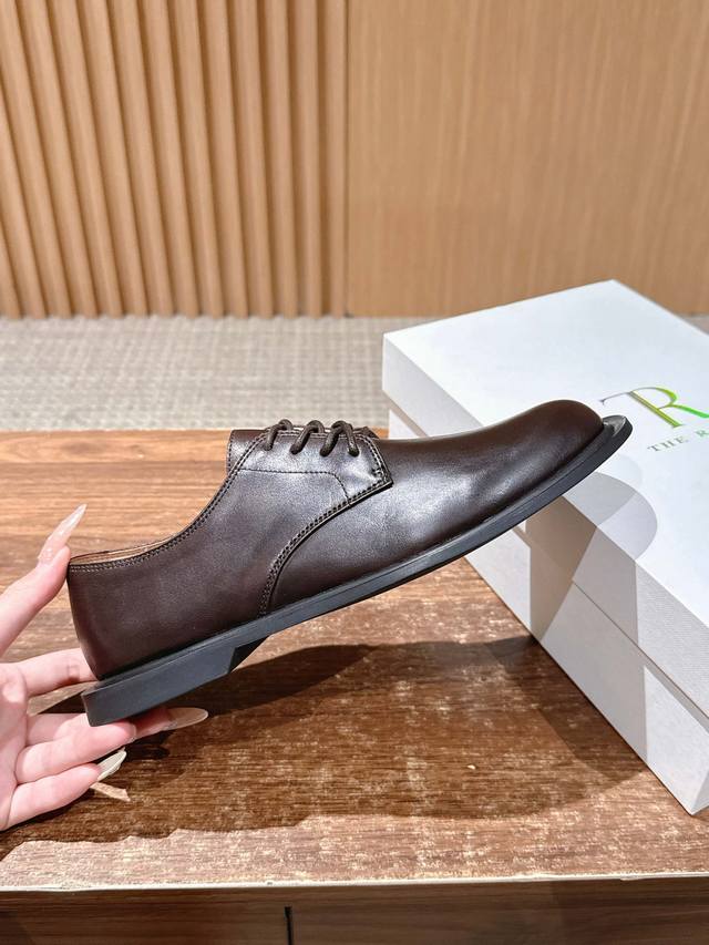 莞产 The Row 新款系带圆头小皮鞋 DDD 美貌与实用并存之余还舒服充满复古英伦风的美拉德比鞋 ,首先就是给人一种很帅气英伦复古的感觉 说白了就是一双充满英伦风的小皮鞋 盐又甜非常的显气质!冬天搭配袜子随意穿搭都有股美拉德风范,时髦又减龄 DDD 面料: 进口小牛皮,皮料舒适柔软有光泽,最重要是还容易打理 DDD 内里: 进口吸汗透染牛皮 DDD 大底: 原版开模超轻橡胶大底 DDD 尺码:35 36 37 38 39 40 40不退换 DDD