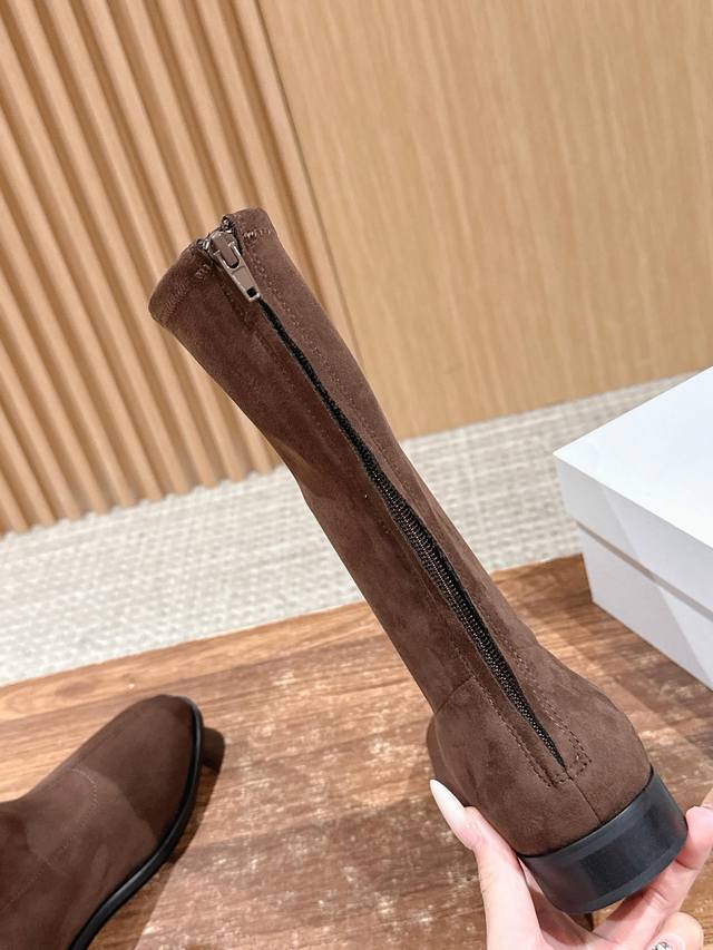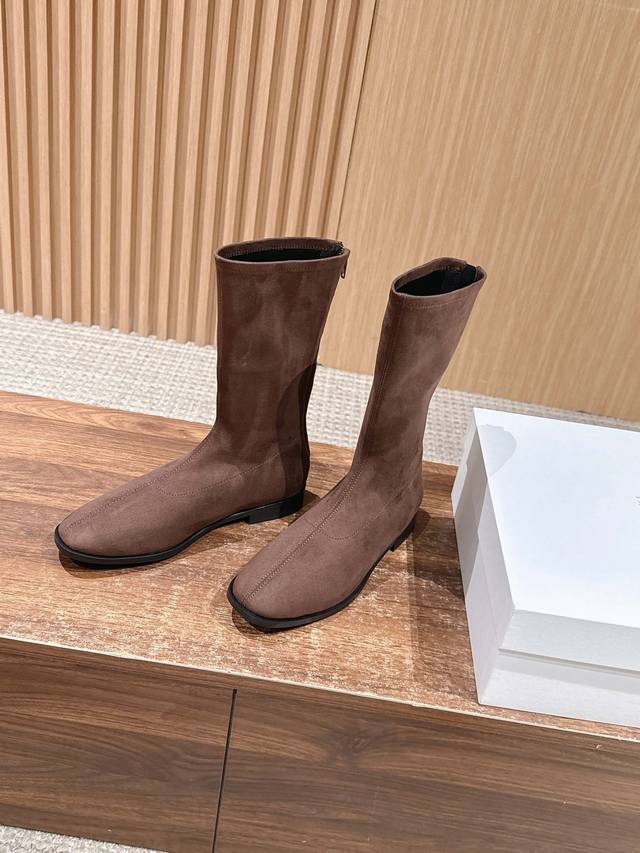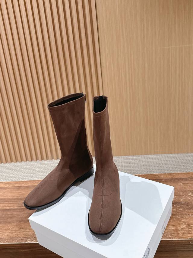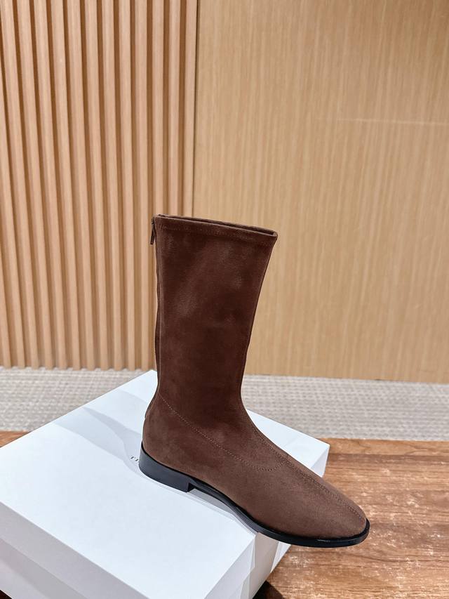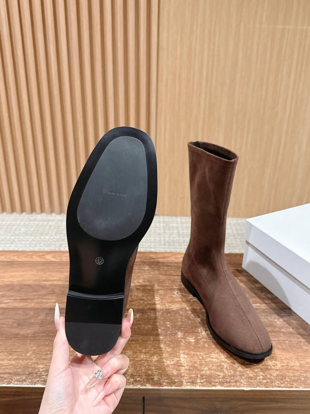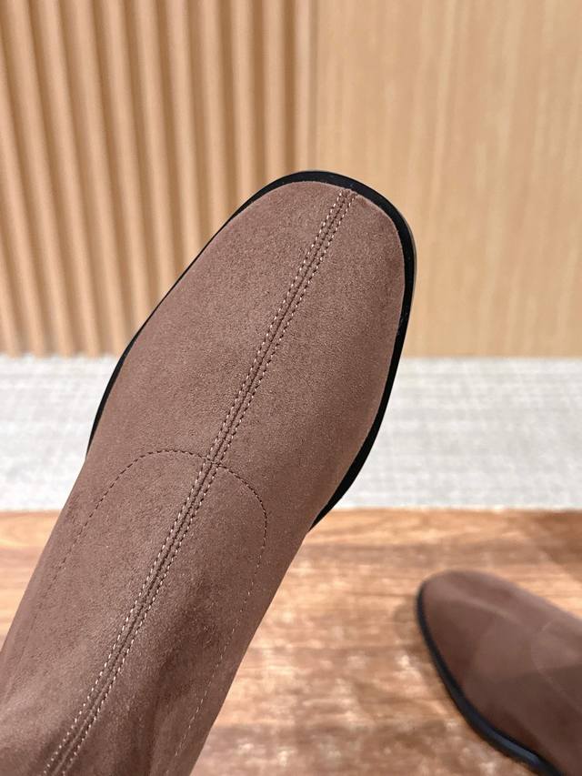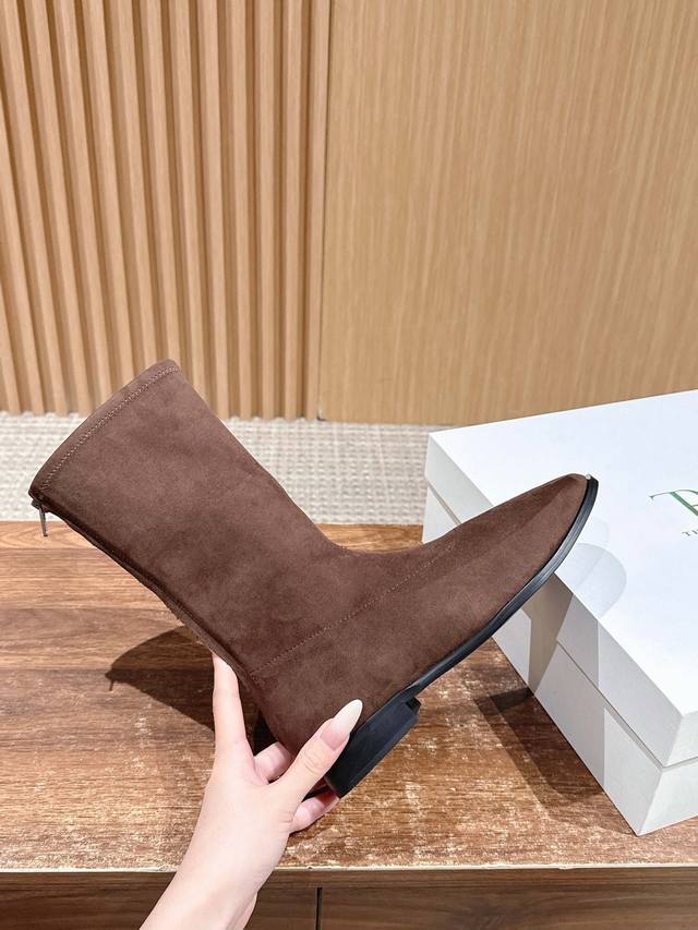 莞产 The Row 秋冬弹力靴被这双靴拿捏了 DDD 这双弹力羊绒靴一开箱,直接把“低调奢感”焊在了秋冬穿搭里 DDD 配色是秋冬的“高级密码” DDD 深棕是焦糖玛奇朵本朵,配燕麦色大衣直接是“松弛大小姐”;黑色是万能搭子,裹件黑色高领+直筒裤,清冷感直接拉满。靴型是微微收脚的窄靴,能把小腿线条衬得巨纤细,小个子穿也完全不压个子。 DDD 开箱的仪式感也给足了: DDD 白丝绒防尘袋+烫金Logo鞋盒,连标签都做得像张艺术品卡片,拆开的每一步都像拆一份“不喧哗的精致”。 DDD 材质是真的会呼吸 DD
