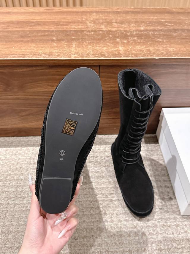 莞产 The Row 秋季新款绑带拉链老钱风雪地靴 采用皮毛一体鞋面,触感柔软舒适,内里羊毛 不仅保暖而且更加保护生命。鞋底采用橡胶材质,厚实防滑,为你的行走提供更加稳定和安全的支撑,让你的冬日穿搭更显时尚与自然。在雪天或者雨天,它能够保护你的双脚不受湿寒的侵袭,让你享受轻松愉快的时光。别犹豫,在这个秋冬季,尽显个性魅力,从脚开始,追求自我,活出精彩生活! DDD 鞋面: 皮毛一体 DDD 大底:原版沟纹橡胶底组合大底,底厚2Cm DDD 尺码:35 36 37 38 39 40 40不退换 DDD