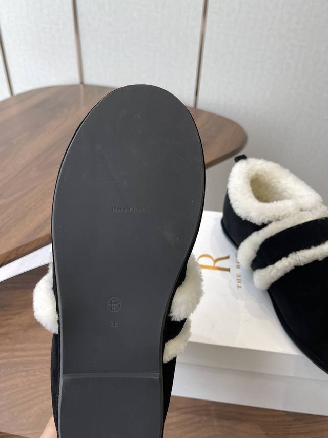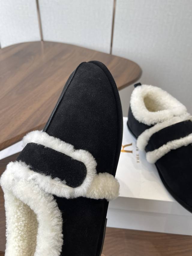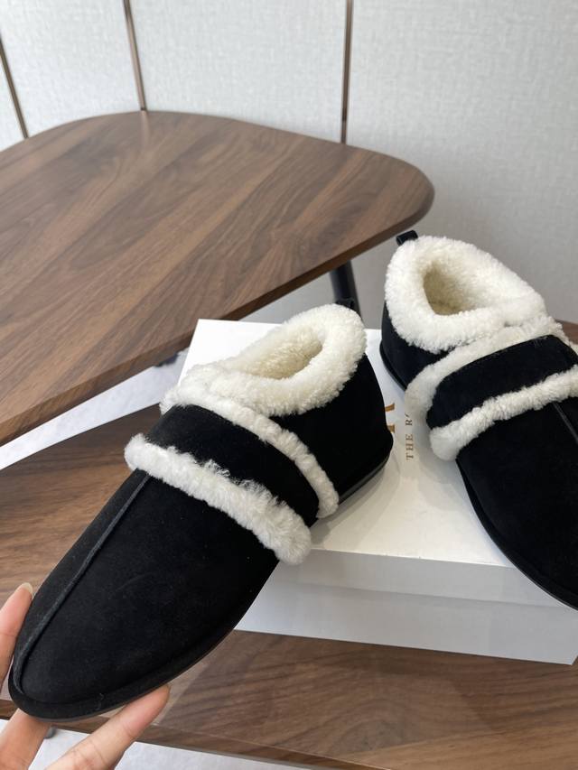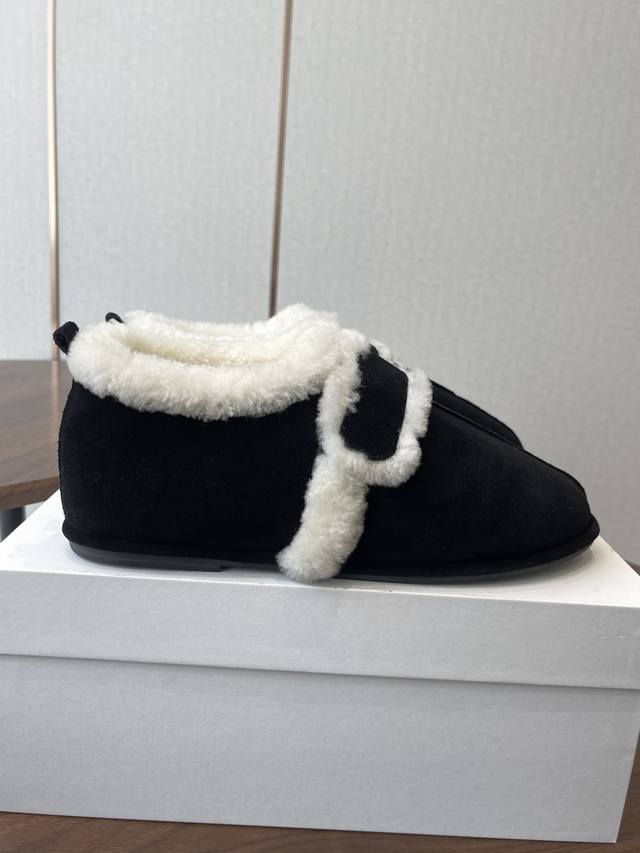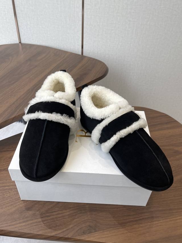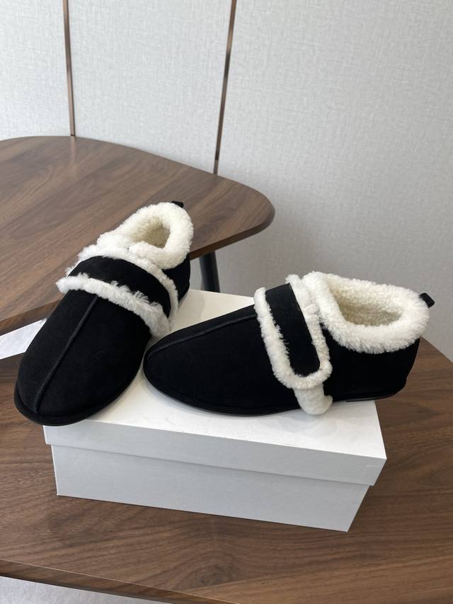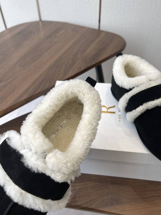 莞产25年最新款The Row皮毛一体羊毛靴,魔术贴设计简单又方便,搭配也好看!整个鞋子非常柔软,好穿不磨脚。各大博主纷纷在穿,简单设计乃是这个品牌一贯作风,迎来众人喜爱看着简单上脚起来却很好看 面料:原版定制进口胎牛绒,隐藏内增高2Cm活动乳胶鞋垫:内里羊毛,大底:Tpu模具大底 延续了一贯极简风格,鞋身极其轻便贴肤,整双鞋子看似简单其实工艺很难,采用全皮套包制作工艺,老师傅纯手工缝制作,超级废料,上脚非常舒适柔软亲肤,脚感方面完全不可担心,好穿是必须的,穿若无穿的上脚体验 Size:35-41 40