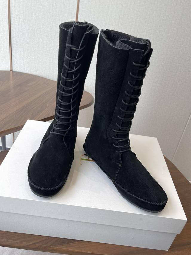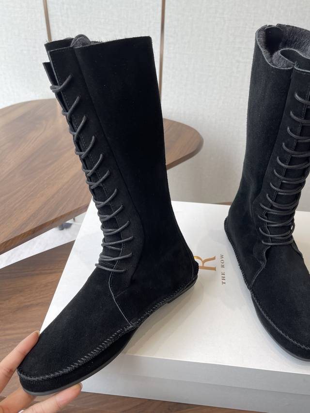 莞产The Row 秋季最新款绑带高邦拉链老钱风雪地靴 雪地靴采用胎牛绒皮毛一体鞋面,触感柔软舒适,内里羊毛 不仅保暖而且更加保护生命。鞋底采用橡胶材质,厚实防滑,为你的行走提供更加稳定和安全的支撑,让你的冬日穿搭更显时尚与自然。在雪天或者雨天,它能够保护你的双脚不受湿寒的侵袭,让你享受轻松愉快的时光。别犹豫,在这个秋冬季,尽显个性魅力,从脚开始,追求自我,活出精彩生活! 鞋面: 胎牛绒皮毛一体 大底:模具Tpu橡胶大底,隐形内增高2Cm 筒高度28Cm 尺码:35 36 37 38 39 40 40不退