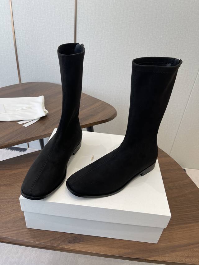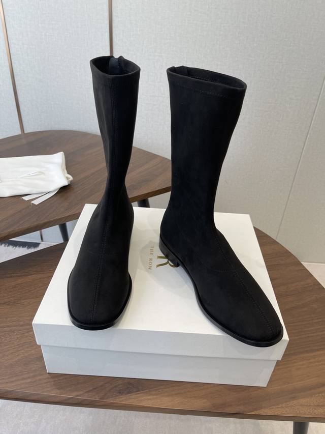 / 莞产The Row 25Ss 秋冬新款 弹力羊京 中靴 显腿长+小众不撞款不要犹豫了,选它没错增高显瘦有气场裙子裤子无所不搭 秋冬靴子它必须拥有姓名-Thero