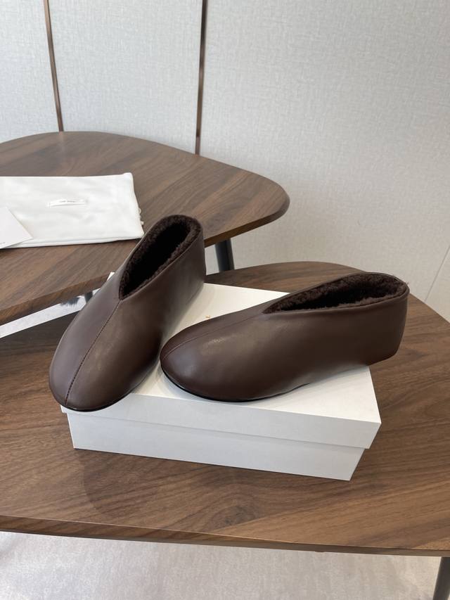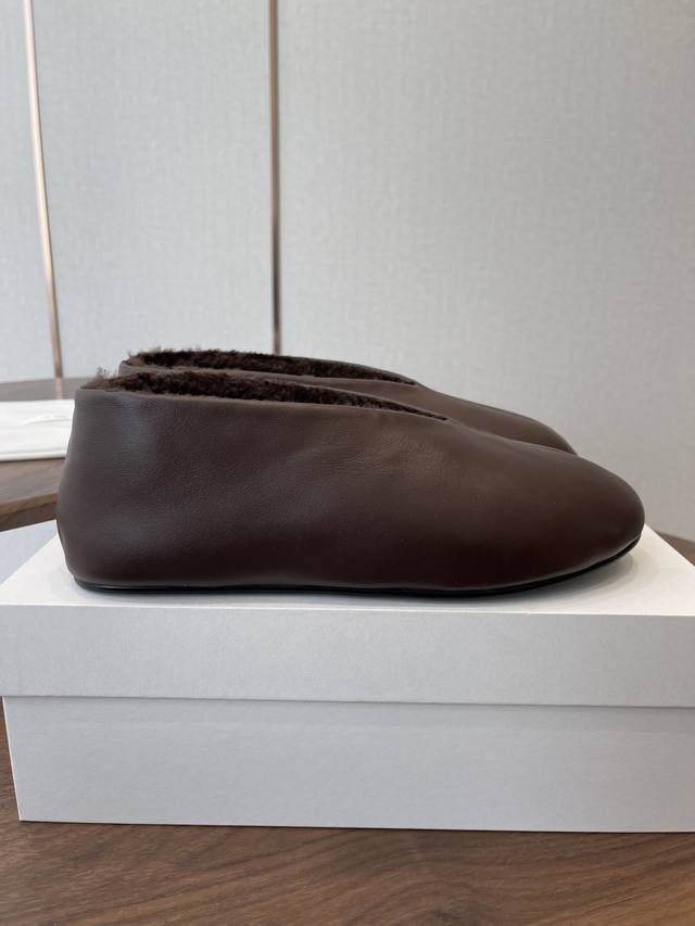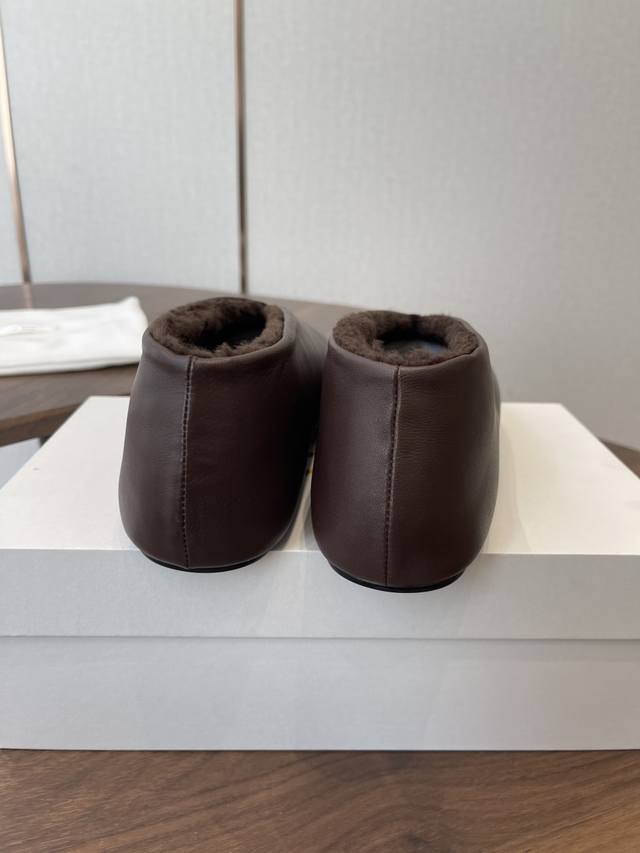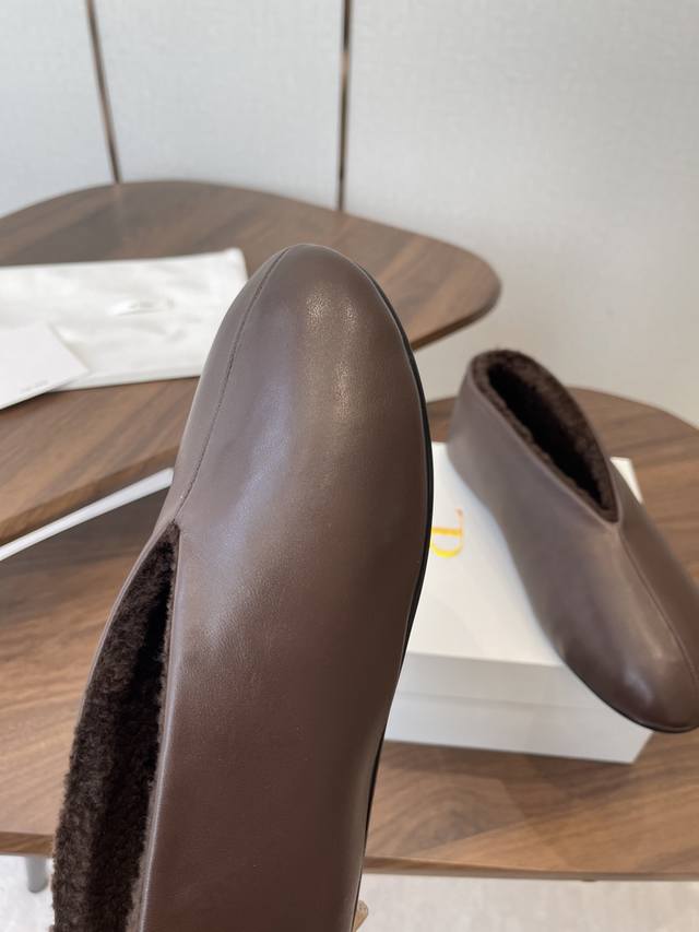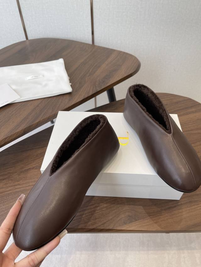 莞产Therow新款羊毛包子鞋 乐福鞋 单鞋 DDD 简直就是本年度最美丽的女鞋嘛,一穿上就散发出法式优雅的气质,高级又时髦,简直是可盐可甜,文艺范儿十足,气质爆棚! Ddd 好看又好穿,简直就是风魔全球的经典之作,特别是那柔软细腻的鳄鱼纹牛反毛皮面料,让这款芭蕾舞鞋立马变得与众不同,质感超级棒! Ddd 鞋头的设计简直是完美无缺,弧度恰到好处,柔软而有弹性,整体看起来既大气又不失时尚感,简约的鞋面设计巧妙地融入了时髦元素,带条设计更是贴心至极,无论你是宽脚、胖脚还是瘦脚都能轻松穿出美感。 Ddd 鞋子的