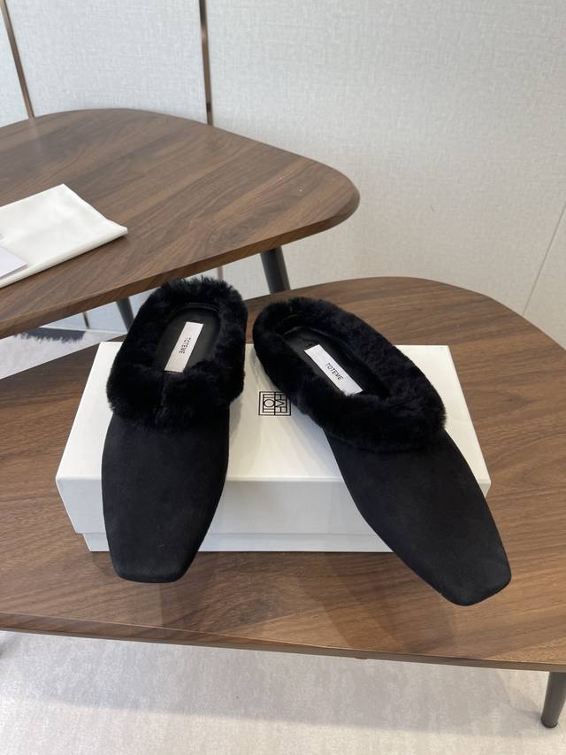 莞产Toteme 25秋冬 新款方头平底 羊毛半拖 小众 北欧极简风格,羊毛内里柔软,看似简单的鞋子 实际耗料又重工,软到没有底!穿着特别特别舒服,特别时髦,颜