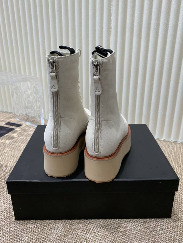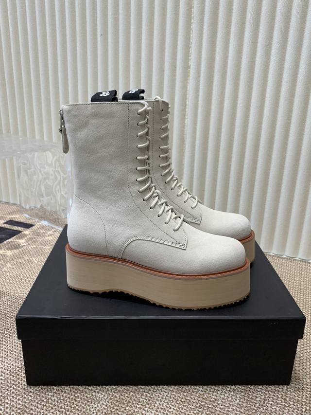 / 薄底 厚底 R13 女士英伦风经典厚底短靴切尔西靴圆头皮靴 底厚7厘米.中筒皮质军靴,采用手工皮革面料制成,柔软舒适,前系带后拉链设计。 帮面材质:牛皮革 码数