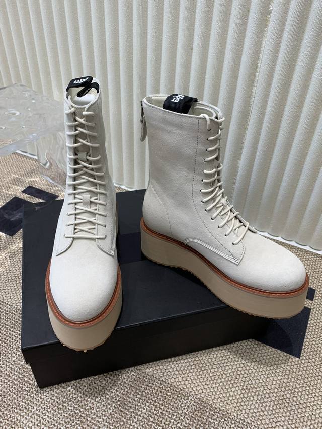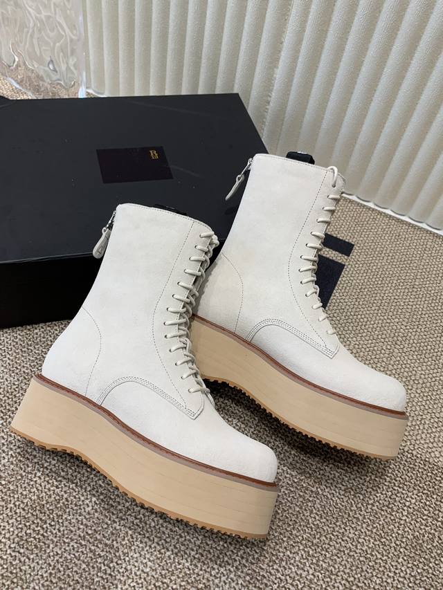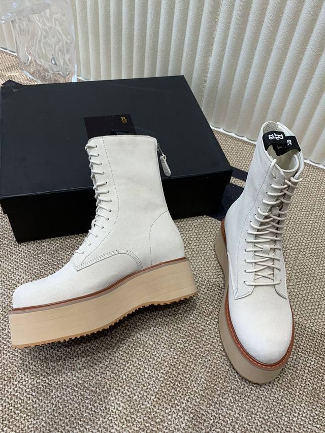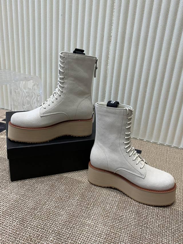 薄底 厚底 R13 女士英伦风经典厚底短靴切尔西靴圆头皮靴 底厚7厘米.中筒皮质军靴,采用手工皮革面料制成,柔软舒适,前系带后拉链设计。 帮面材质:牛皮革 码数