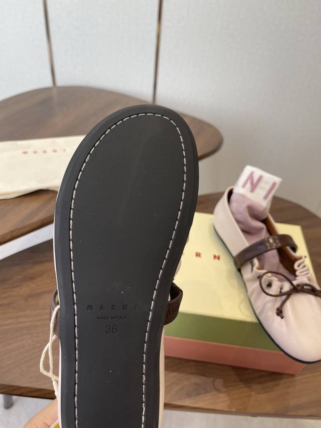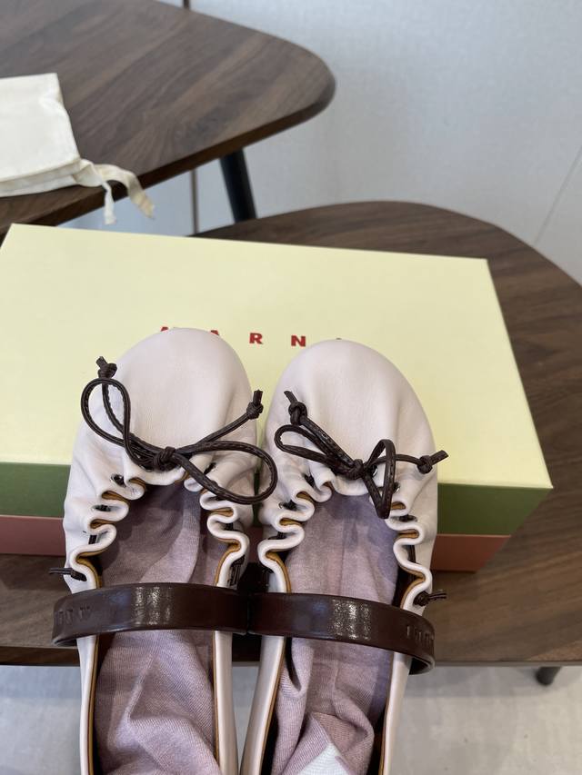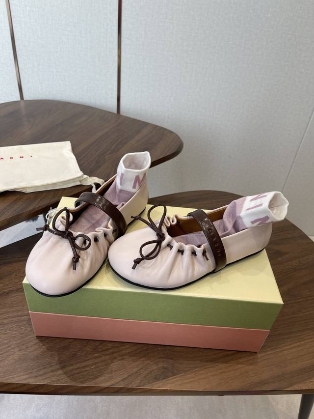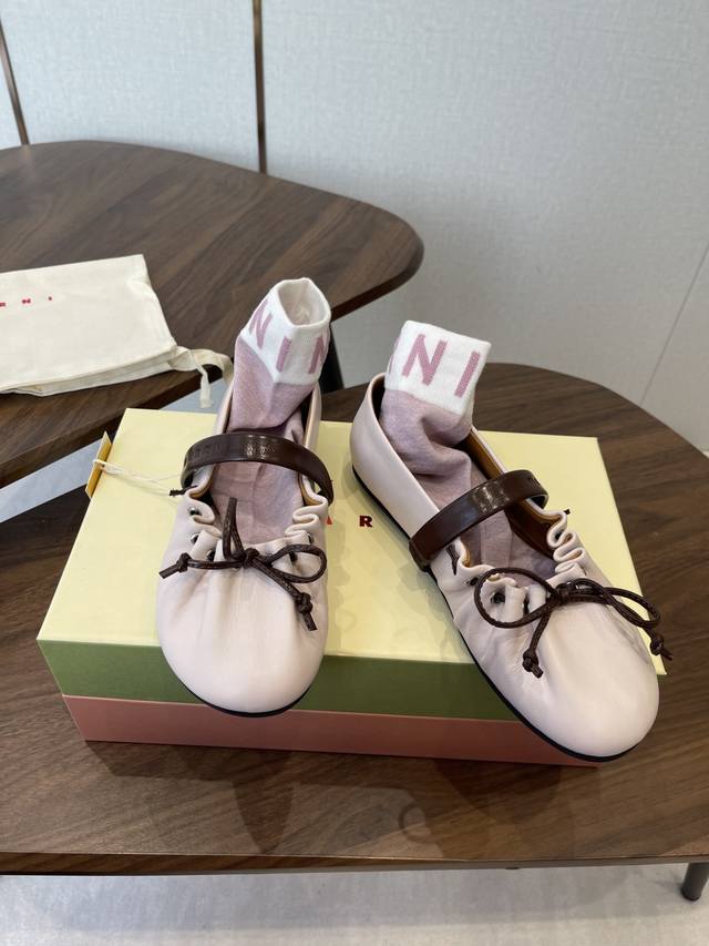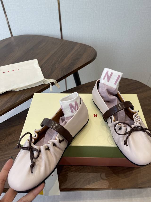 袜子10 Marni玛尼26Fw Angelababy同款褶皱蝴蝶结芭蕾舞鞋平底玛丽珍单鞋 Ddd 圆头轮廓、撞色鞋面、棕色蝴蝶结与鞋口绑带,整体呈现可爱、极简的调性。 Ddd 超嗲的Marni 芭蕾舞鞋,拼色自带松弛感系带甜酷得刚好。 Ddd 属于Balletcore的浪漫季节又到了。打开鞋柜,芭蕾舞鞋绝对是那件既能搭配一切又能点亮一切的单品! Ddd 鞋面:小牛皮 Ddd 内里垫脚:羊皮 Ddd 鞋底:开模橡胶大底 Ddd 码数:35-39 40.41定做不退换 DDD