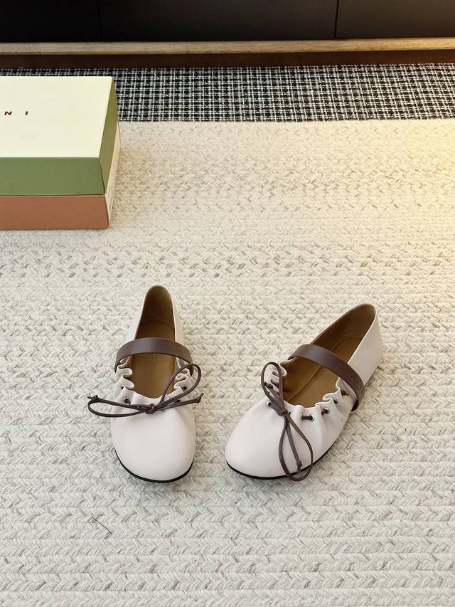 褶皱蝴蝶结芭蕾平底鞋温柔玛丽珍 演绎经典新生 DDD 圆头轮廓 撞色鞋面 Ddd 棕调蝴蝶结 细绑带点缀 Ddd 可爱与极简的完美平衡 DDD 一双超嗲的Marni芭蕾鞋 Ddd 拼色设计自带慵懒氛围 Ddd 系带细节甜酷刚好 收放自如 DDD 又到Balletcore浪漫季 Ddd 打开鞋柜 它是那件 Ddd 能搭配一切 亦能点亮一切的存在 Ddd 鞋面材质:进口水晶山羊皮 Ddd 内里垫脚:羊皮 Ddd 鞋底材质:开模橡胶大底 Ddd 码数选购:35-40 40定制不退换 DDD