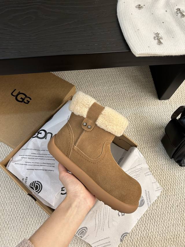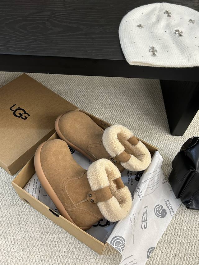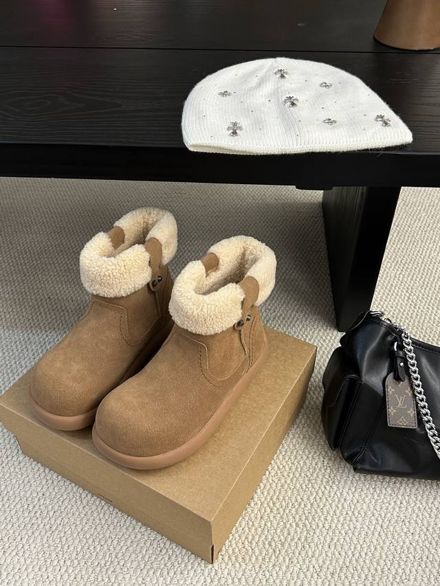/ 这款Ugg泰迪卷毛饰扣短靴,翻毛皮鞋面+羊毛鞋口,内里也是羊毛,保暖力满分!卷毛饰扣设计超有韩系氛围感,搭配卫衣、套装都很出片,通勤休闲都Ok! 颜色:栗色、巧