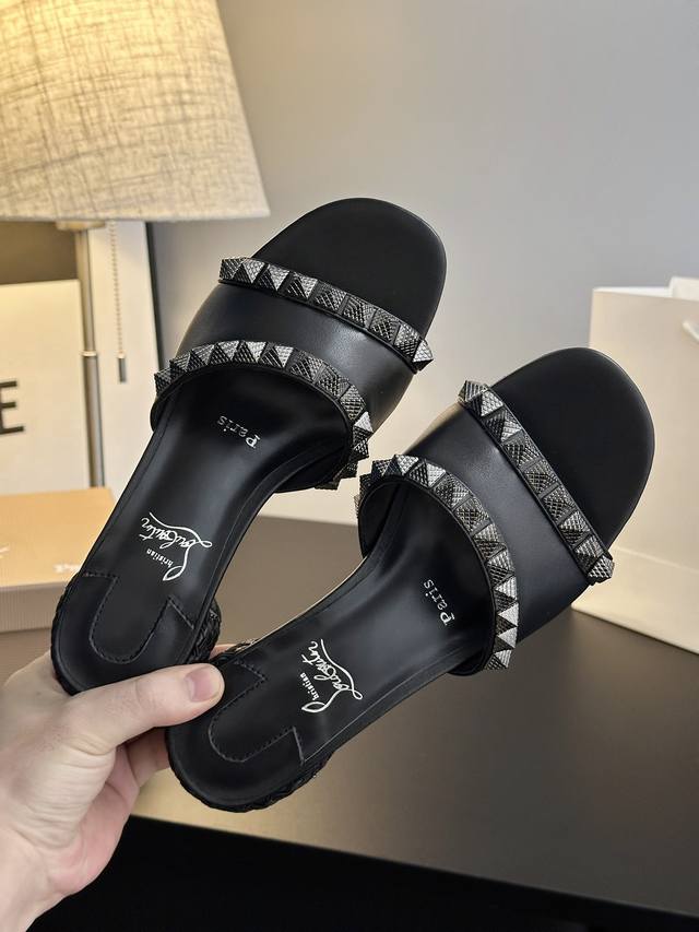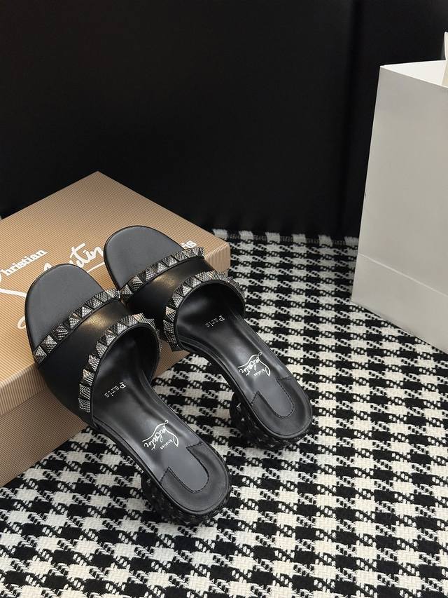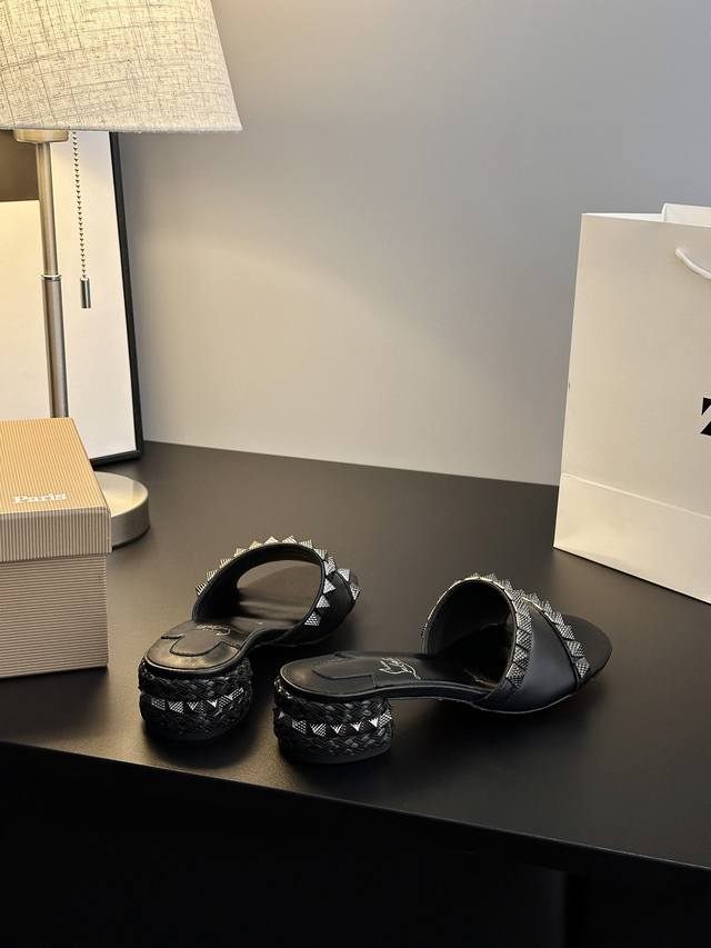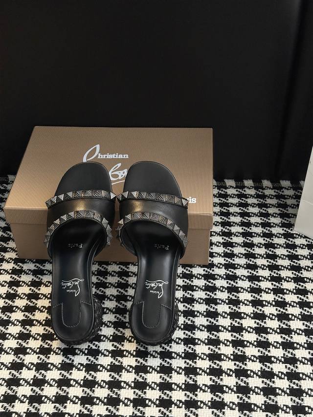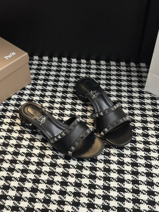铆钉小方跟凉鞋细节满满!时髦精必备,女士钟爱简约又难以抗拒系,格外精致又文艺,轻松游走于通勤和休闲场合鞋面材质:头层牛皮鞋垫材质:羊皮鞋底材质:原版开模橡胶底 4.5Cm 选购尺码:35-42 42定制 真皮底+40