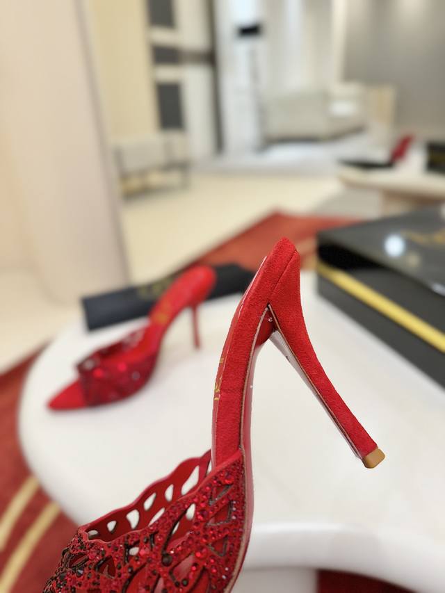 镂空满钻拖鞋W. DDD 这款 Maison Christian Louboutin 鞋采用 100 毫米的高跟鞋跟,由 Fever 红色羊京制成,并配有软垫鞋垫。每走一步都能捕捉光线,这款鞋子装饰了无数 1,700 个不同大小的闪闪发光的红色宝石,有些是手工放置的,以创造出美丽微妙的淡化效果。手工制作的开放式设计展现了脚部优雅。 DDD Size:35码-43码 DDD 40.41.42.定做不退不换,43码10 DDD 跟高:10Cm 8.5Cm可以定做 DDD 颜色:红 黑 DDD