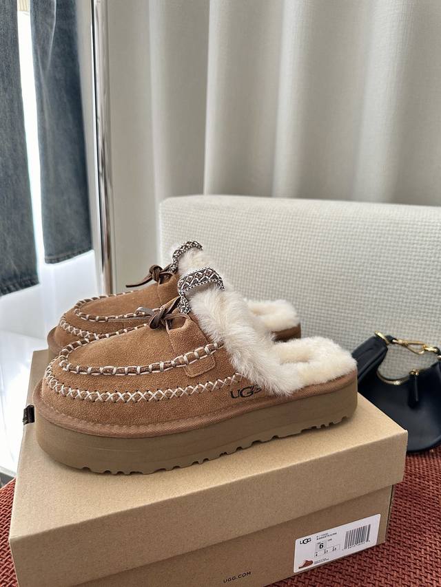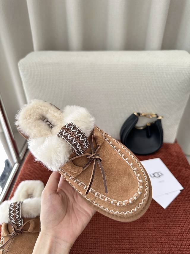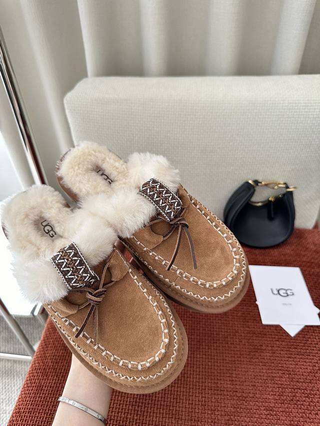 阿尔派拖鞋|原版购入代购级别栗色- 面料:100%翻毛皮革 衬里:羊皮毛 鞋面装饰缝线、穗带细节 3Cm轻盈Eva外底 Size:35-40