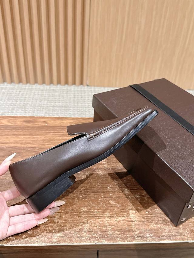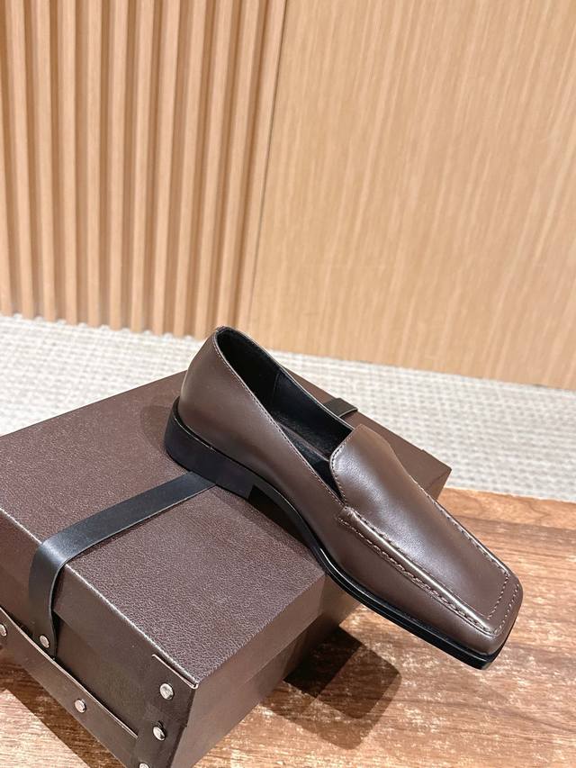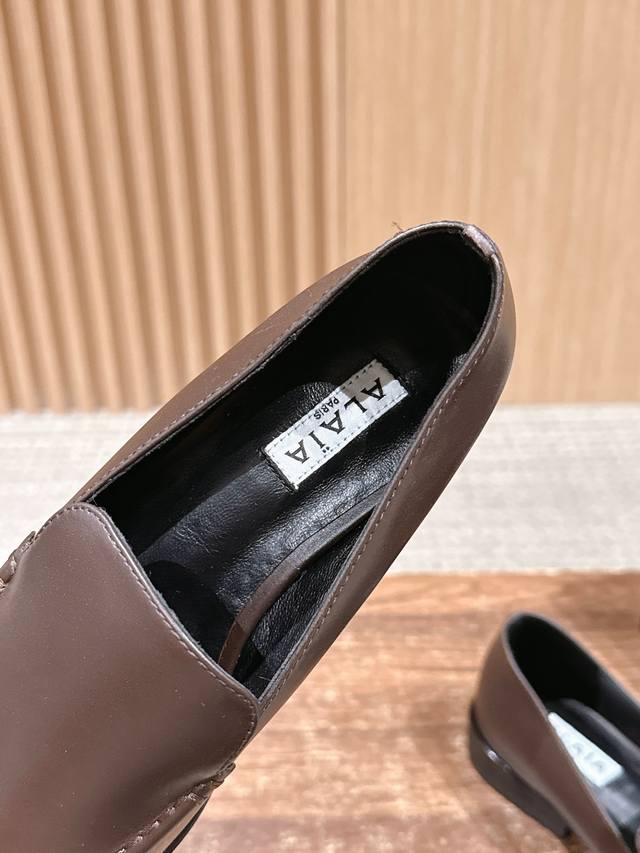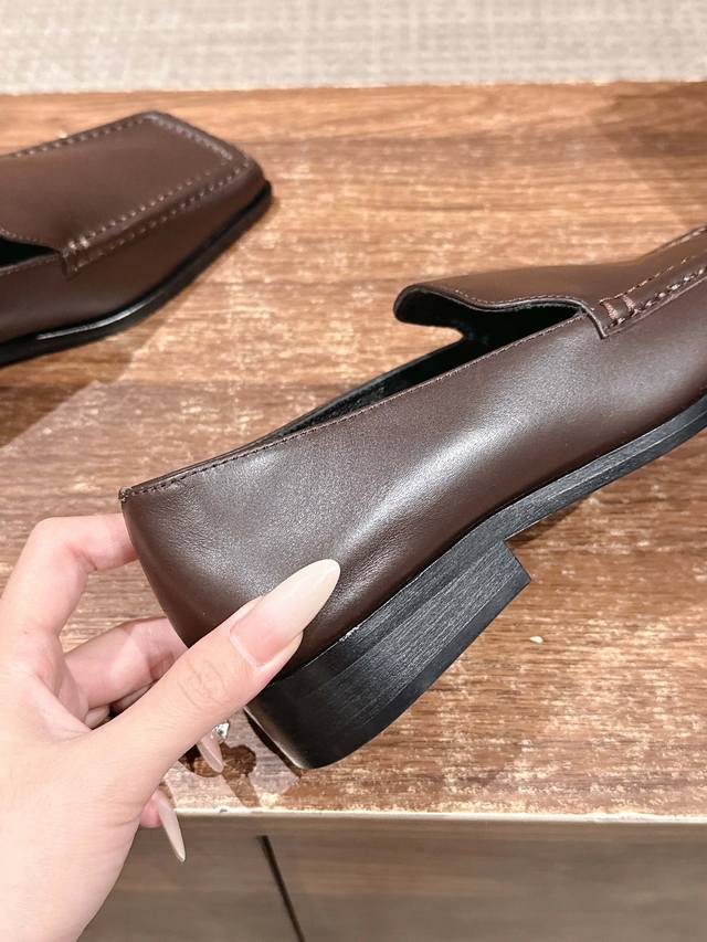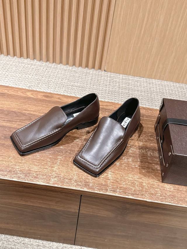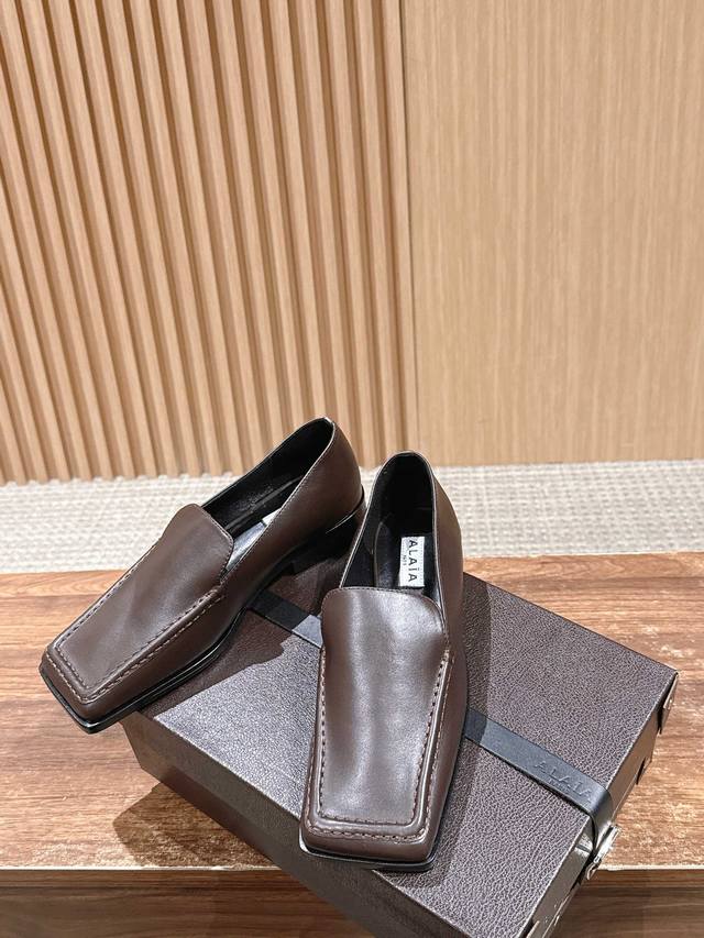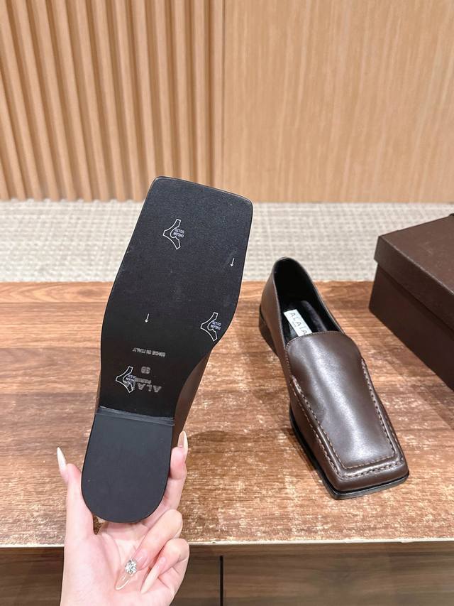 阿莱亚新款英伦风方头乐福鞋 DDD 标志性的方形鞋头,鞋身无多余装饰,仅靠鞋面的明线缝线点缀细节,属于“简约但有辨识度”的风格。外层是光泽感小牛皮,内里搭配小羊皮衬里,鞋底也是皮质 皮质+橡胶的组合,整体用料很奢华。 DDD 属于乐福鞋的“套脚款”穿脱方便,同时意大利手工制作的工艺也保证了贴合度。图中展示了深棕和黑色两款,都是百搭且显质感的色系,能适配通勤、休闲等多种场景。 DDD 鞋面:牛皮 DDD 内里:牛皮 DDD 大底:意大利真皮大底 DDD 增高:2.5Cm DDD Size :35-40码 4