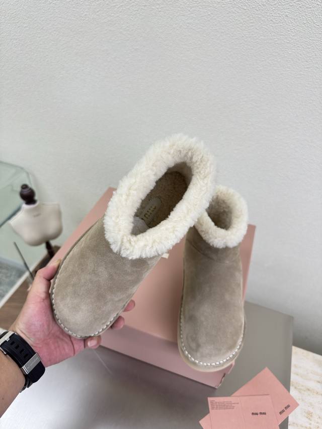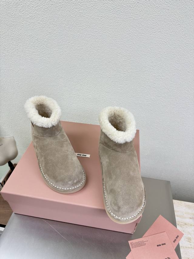 雪地靴 厚底 Miu'miu DDD 驼色高丝光牛反绒皮 羊卷毛内里 DDD 厚底 设计 DDD 系列 Miu'miu 经典舒适 制作 DDD 原版一致 成型大底 高版本 DDD 面料 头层牛反绒 牛皮 DDD 内里 纯羊毛 DDD 立体针车工艺 DDD 原版一致成型大底 防滑耐穿 DDD 原版一致 对版 DDD 设计 少女感 舒适 DDD 对标对版 DDD 35 36 37 38 39 40 41 40 41 码定制 DDD 配置原版包装 DDD