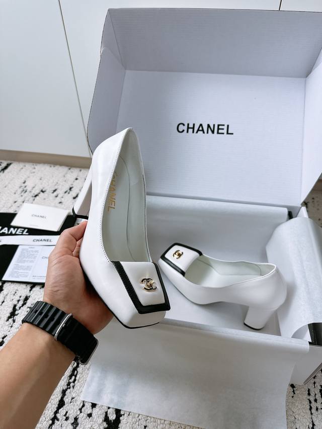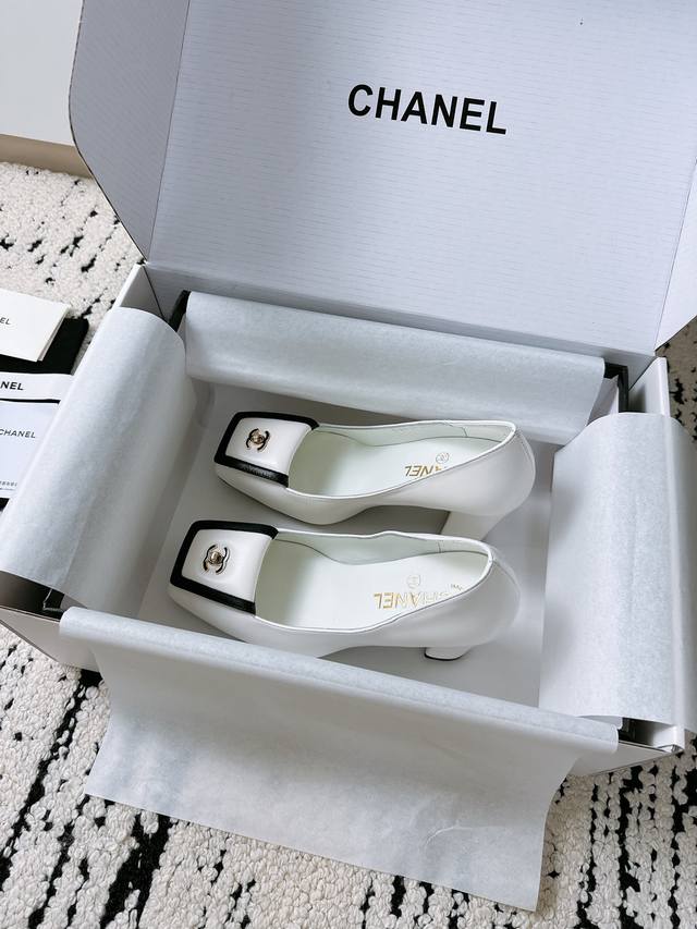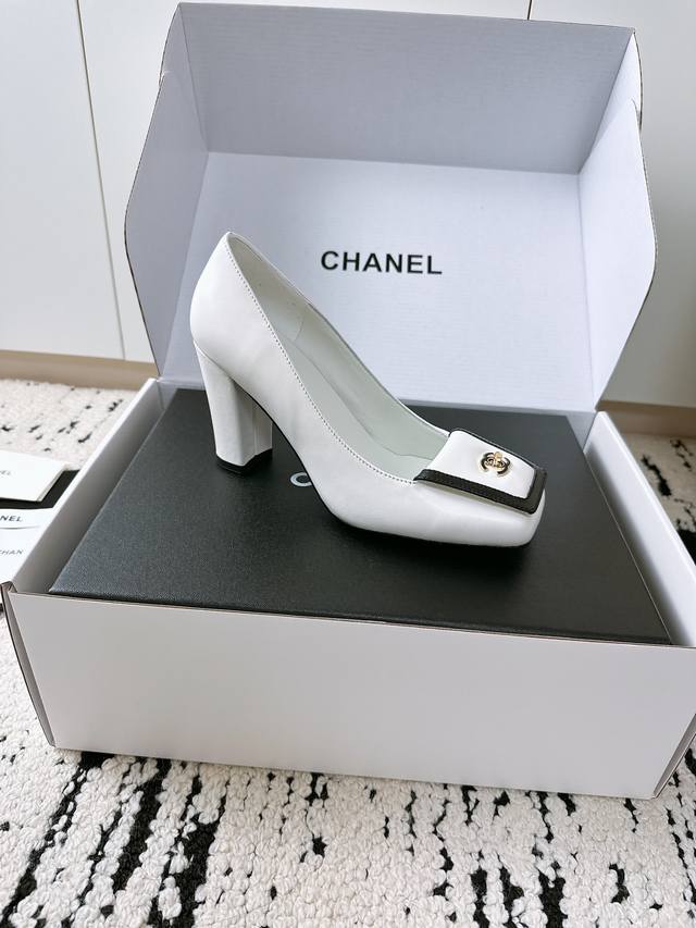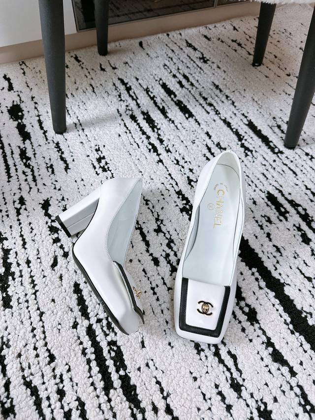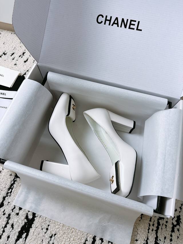 / 顶级专柜走秀款高跟单鞋 专柜走秀款绝对太帅了 这一季最热门的款式,质感非常柔软舒适不卡脚. 经典的Logo双C珍珠扣搭配,超级时尚 原版进口羊皮 羊猄材料 原版