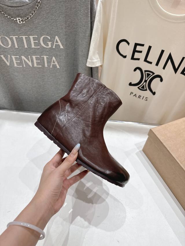 顶级出厂 Renian 小众潮牌~F028秋冬新款复古英伦风切尔西小短靴 网红明星小红书狂追热推 发售蠢萌可爱的造型带了点复古味! 造型特殊,很有辨识度, 显瘦显腿长,绝对实力派,穿上也很舒服,高颜值 舒适,一定要推荐给大家,今年系列的主打, 极简的风格 面料:进口打蜡小牛皮 内里:牛皮里,脚感舒适 大底:原版开模大底 包装:原版全套包装 码数:35-39