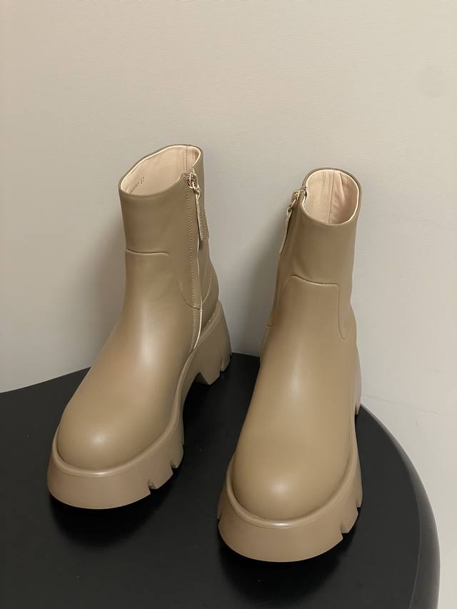 顶级品质秋冬新款 罗西 Gr厚底短靴侧拉链及踝靴增高松糕底靴子 鞋面进口优质牛皮材质 内里垫脚羊皮 舒适透气 原版开模Ip发泡超轻美耐底 尺码35-40 [40
