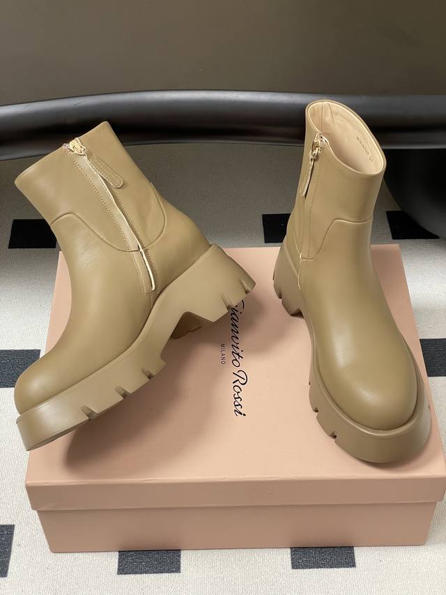 顶级品质秋冬新款 罗西 Gr厚底短靴侧拉链及踝靴增高松糕底靴子 DDD 鞋面进口优质牛皮材质 DDD 内里垫脚羊皮 舒适透气 DDD 原版开模Ip发泡超轻美耐底 DDD 尺码35-40 [40定做] DDD