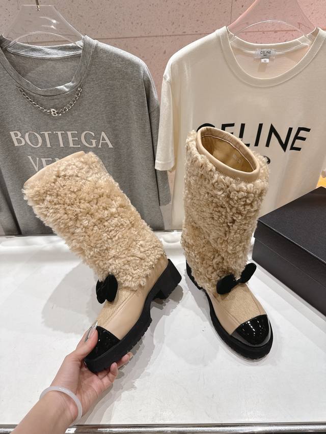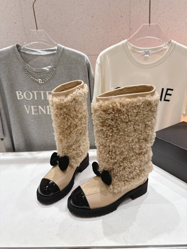 / 顶级品质 双C蝴蝶结拼色厚底雪地靴 面料采用牛皮拼接羊卷毛 内里垫脚均为羊皮 原版开模定制防滑大底 尺码35-41 [40 41定制]
