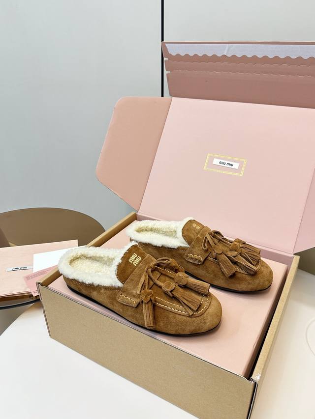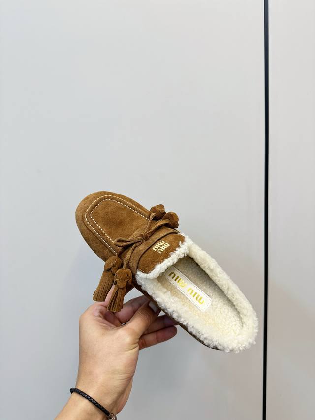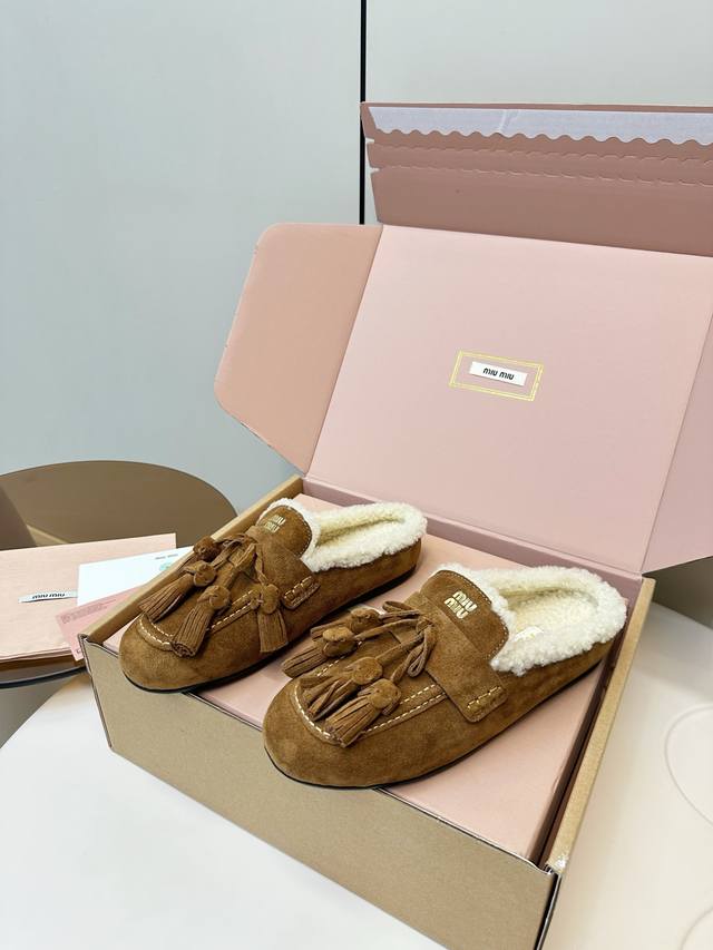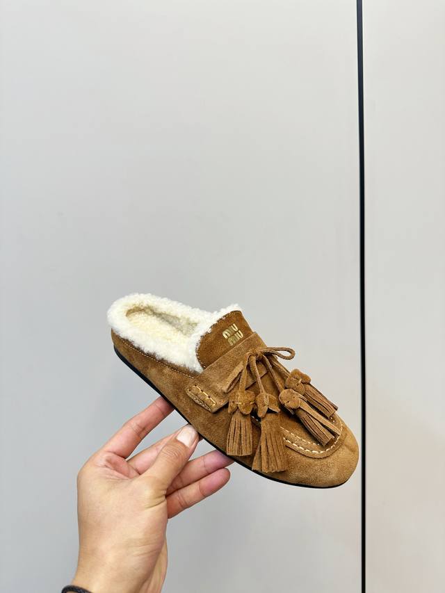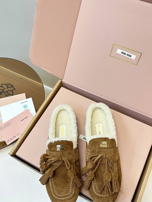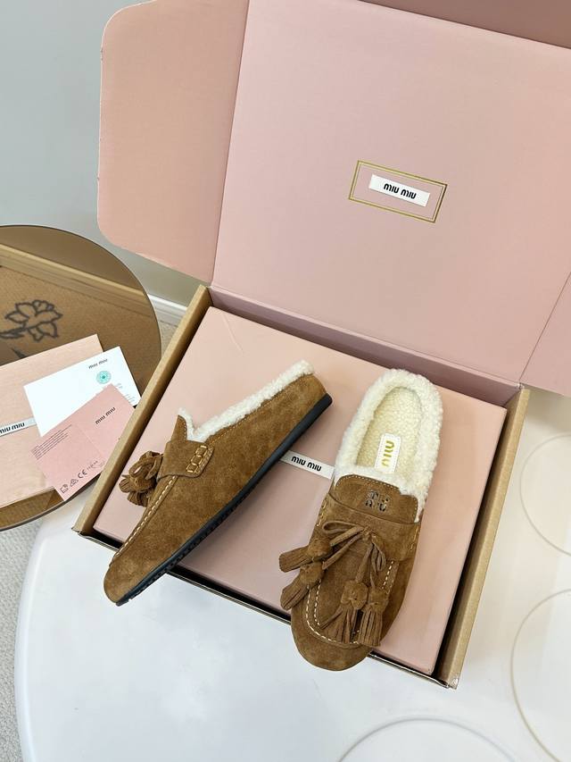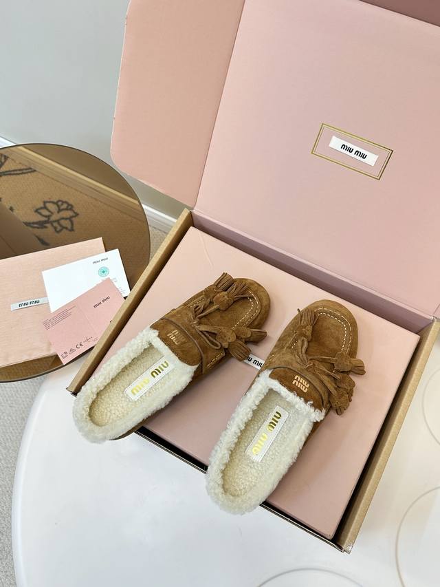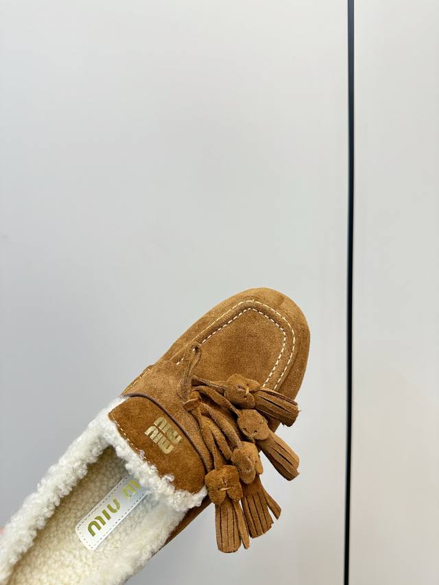 顶级品质 飞机盒+10 DDD Miumiu 缪缪2025Ss秋冬 流苏 时尚羊毛懒人半拖 DDD 秋上新 麂皮流苏乐福鞋 中古美感 DDD 新版型麂皮乐福鞋不基础 DDD 流苏设计带着一点复古的禅意的感觉 DDD 这个秋天一定要拥有哈V DDD 这款永不过时的反绒皮驾车鞋饰有烫金Miu微标设计,彰显别具一格的经典格调。 DDD 鞋面:优质鹿皮 DDD 大底:橡胶底 DDD 内里:羊羔毛 DDD 码数:35-40 40、41订做 DDD