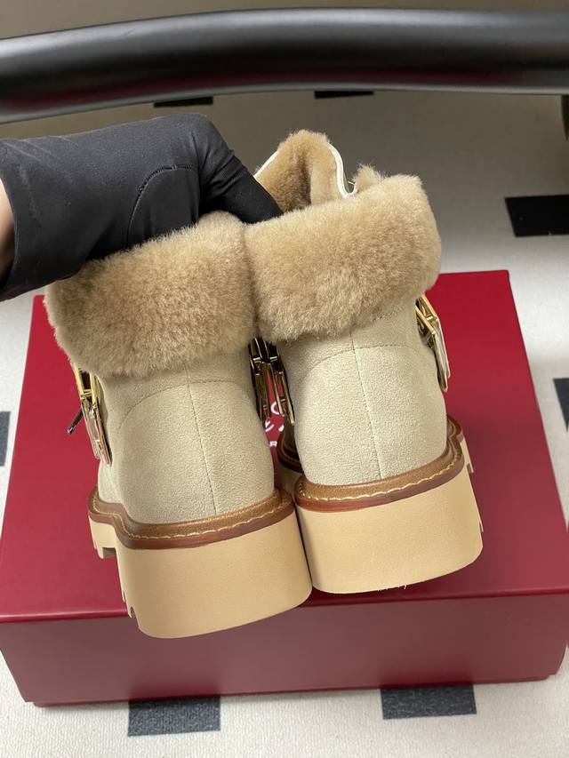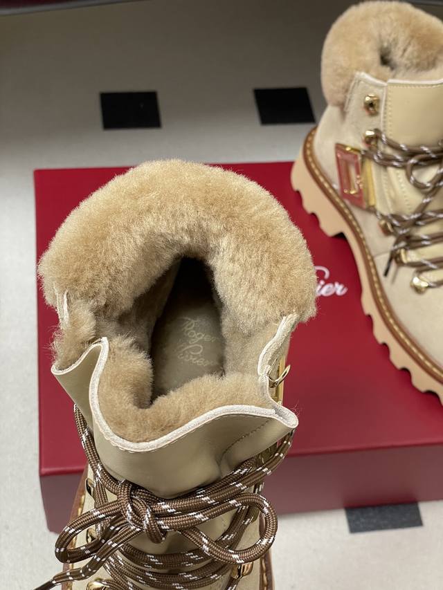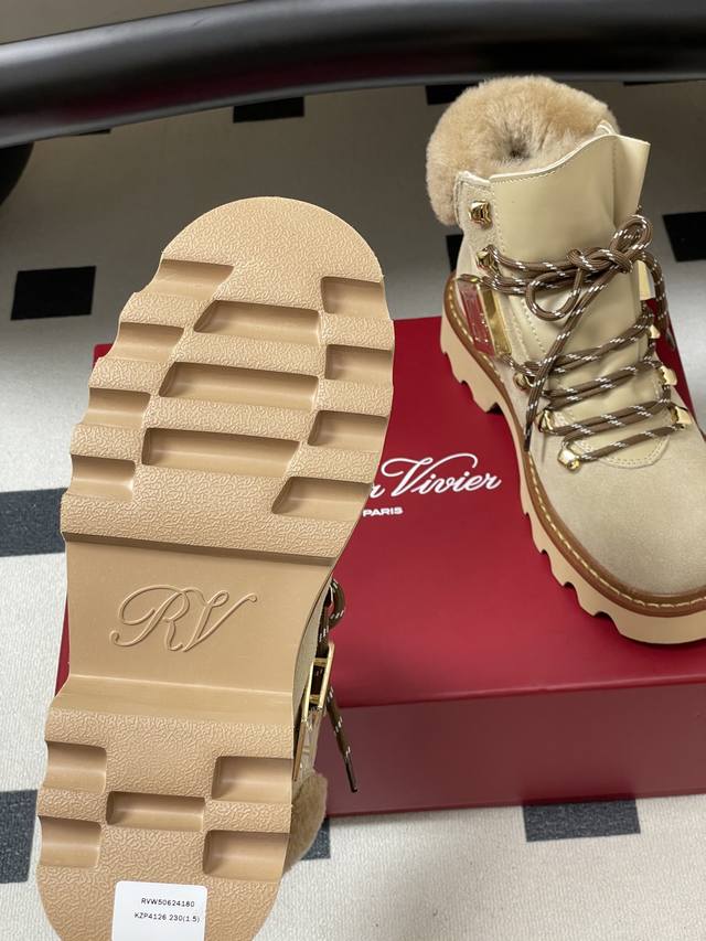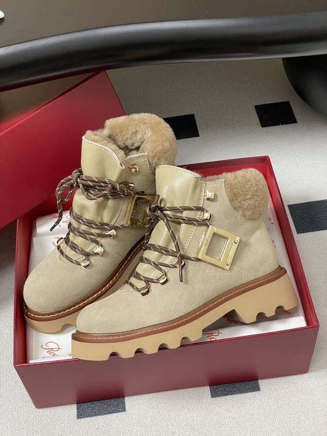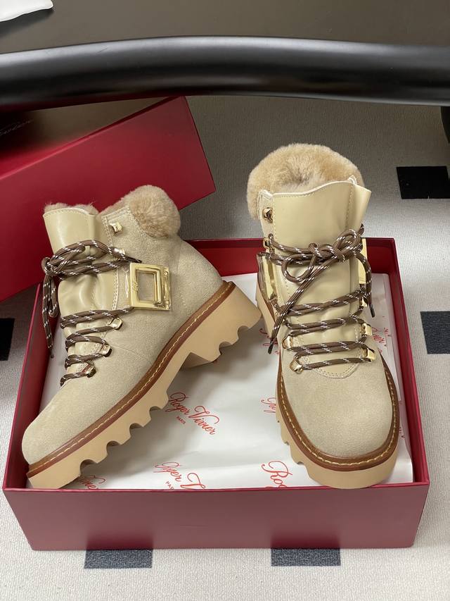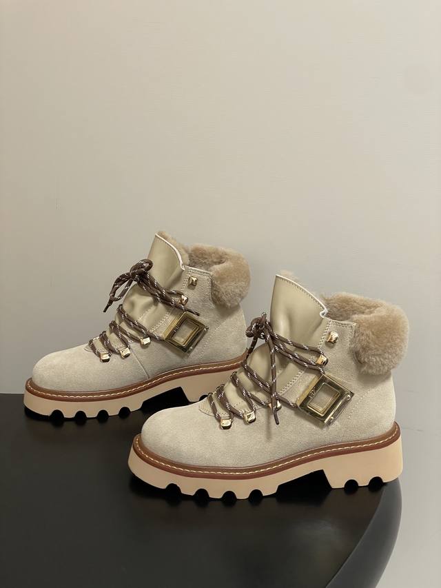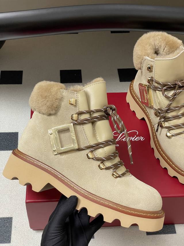 顶级品质 DDD 2025早秋新款 Roger Vivier 罗杰维维亚 Rv Viv' Rangers Truck羊毛系列方扣系带短靴复古风厚底羊毛及踝靴毛毛短靴 DDD Viv' Rangers Truck系列个性又不失精致,演绎都市风格。本款皮靴以绒面皮革制成,搭配防滑厚底,点缀标志性饰扣,轻松为任意造型增添个性。 DDD 发掘鞋靴的时尚潜力,捕捉都市摩登掠影。几何设计,结合Vivier特别的金属搭扣,融合品牌专有工艺与大胆不羁的时尚风格。 DDD 厚底设计时尚又有活力轻松自在,不惧长时穿着 DDD