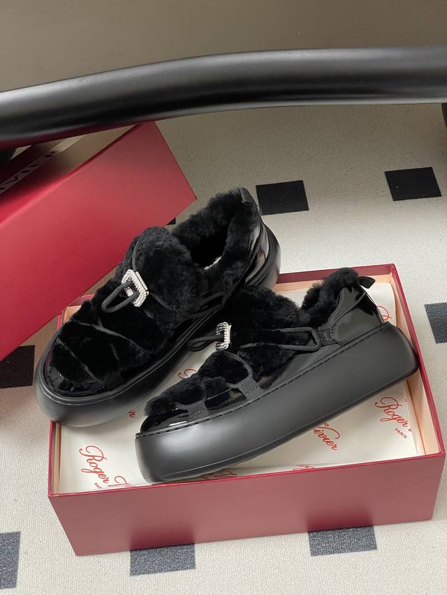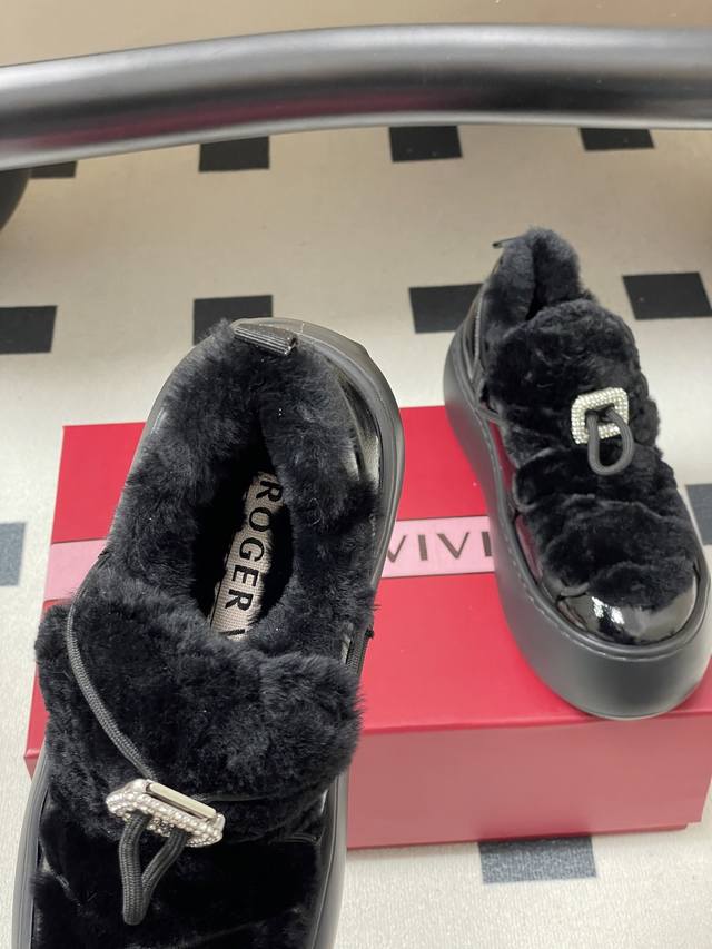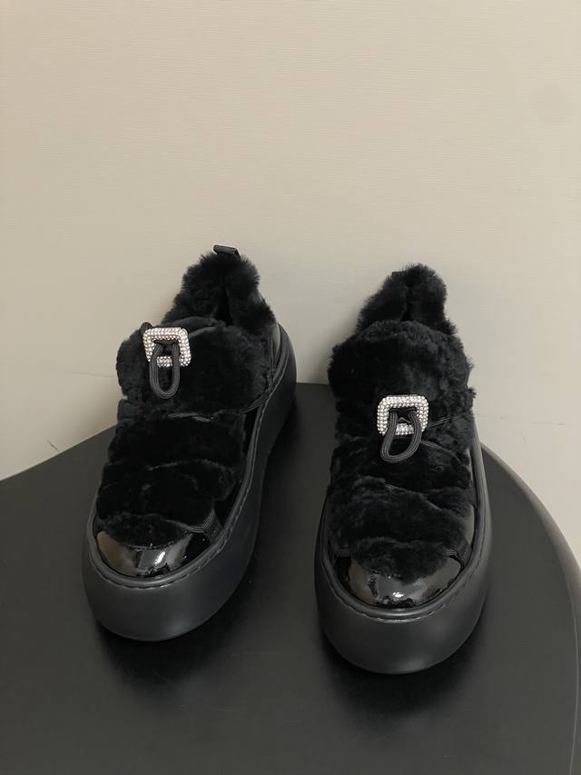 顶级品质 DDD 2025早秋新款 Roger Vivier 罗杰维维亚 Rv Viv' Up Skate羊毛休闲鞋钻扣毛茸茸乐福鞋一脚蹬厚底羊毛里休闲鞋运动鞋 DDD Viv Up Snow Bootie,限定冬日风情,舒适麂皮绒结合初剪羊毛,更柔软更蓬松,鞋底无痛增高5公分,采用Eva材料轻盈又有弹性,仿佛在软垫上行走。搭配钻扣既有品牌标识又为精致加分。超级百搭,快速出门一脚蹬,懒人必备。 DDD 厚底设计时尚又有活力轻松自在,不惧长时穿着 DDD 暗色小钻扣怎么可以这么可爱! 低调内敛还百搭 到底谁
