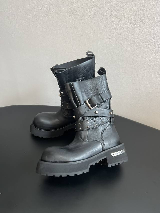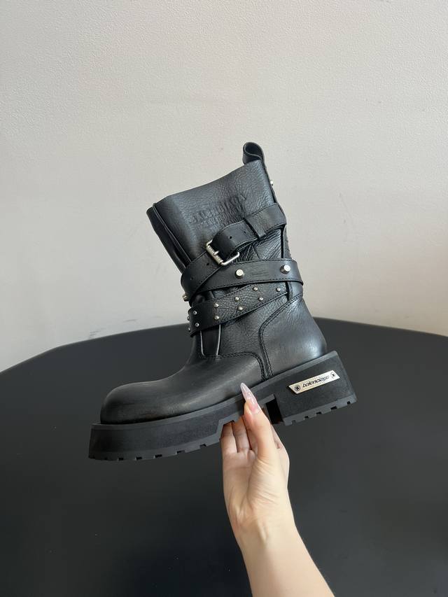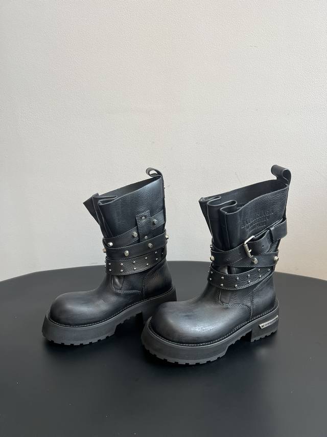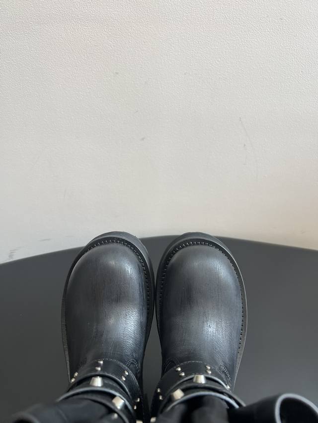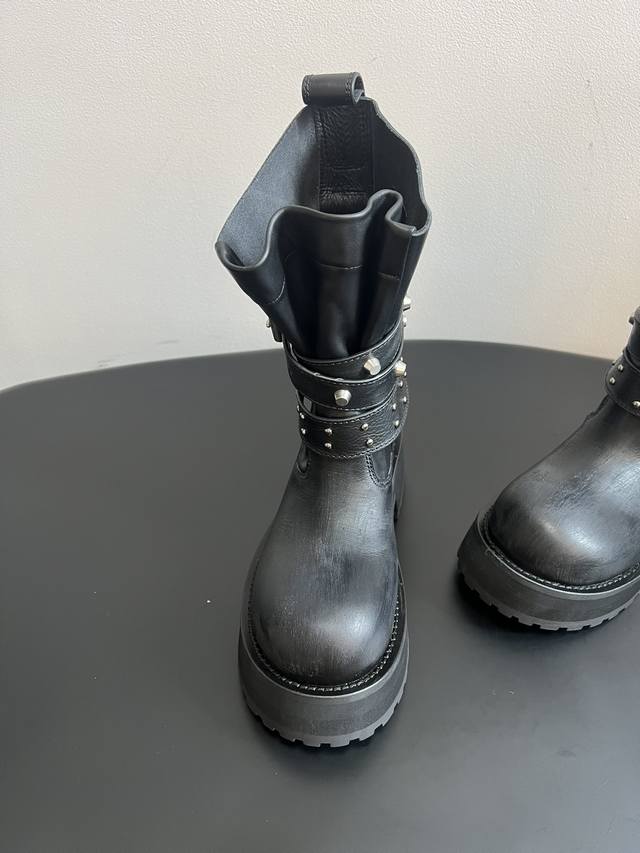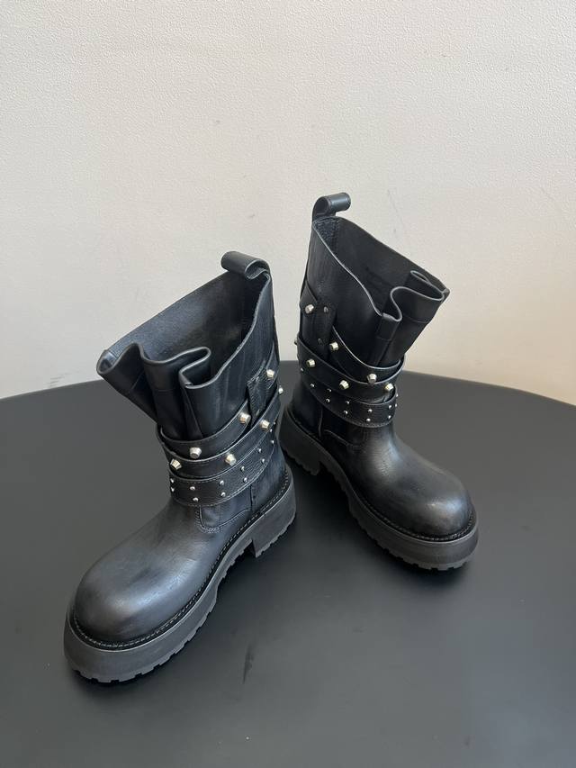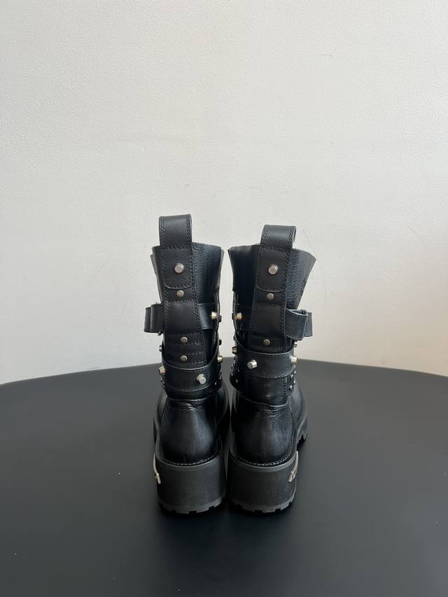 独特的翻折设计,搭配搭配个性金属扣带,打破常规,每一步都走出不羁态度。皮革质感高级,光泽内敛又奢华,细节之处尽显匠心!