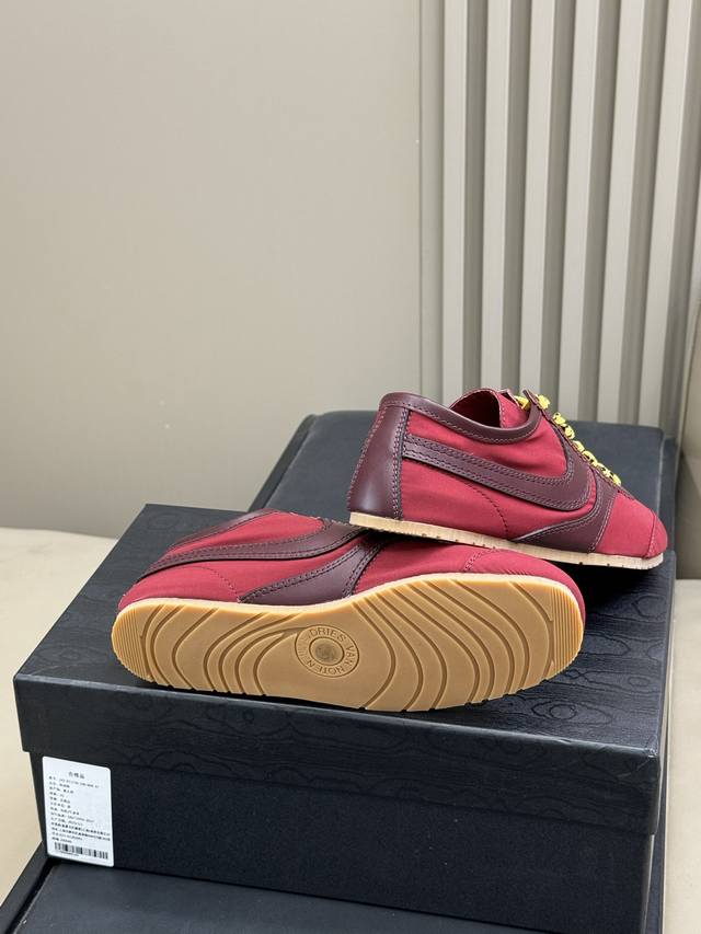 顶级品质 DDD Dries Van Noten 优雅运动 DDD 本季,Dries Van Noten 将经典训练鞋全面回归,延续品牌一贯的诗意色彩,融合柔美面料与复古结构,打造出一系列“优雅运动”风格鞋款。 DDD 趋势看点: DDD 1 DDD 缎面与麂皮并置,细腻麂皮到丝感缎面,鞋面材质构 DDD 建出“运动×轻奢”语汇 DDD 2 DDD 复古轮廓升级,延续经典拳击鞋结构,低帮 中帮 高帮轮廓全面覆盖,致敬90年代搏击与训练文化,鞋底保持轻质复古胶底 DDD 3全新色彩系统,唤醒春夏感官体验,清