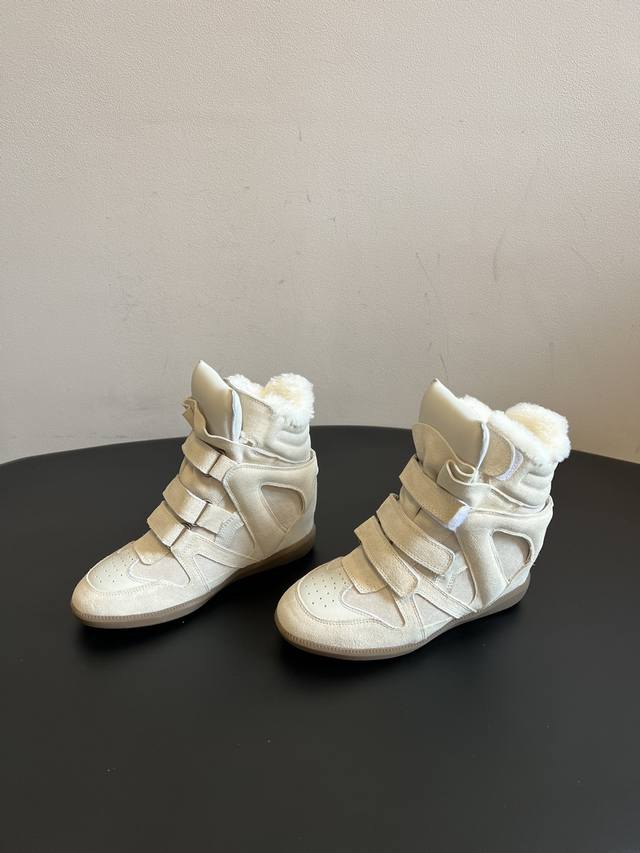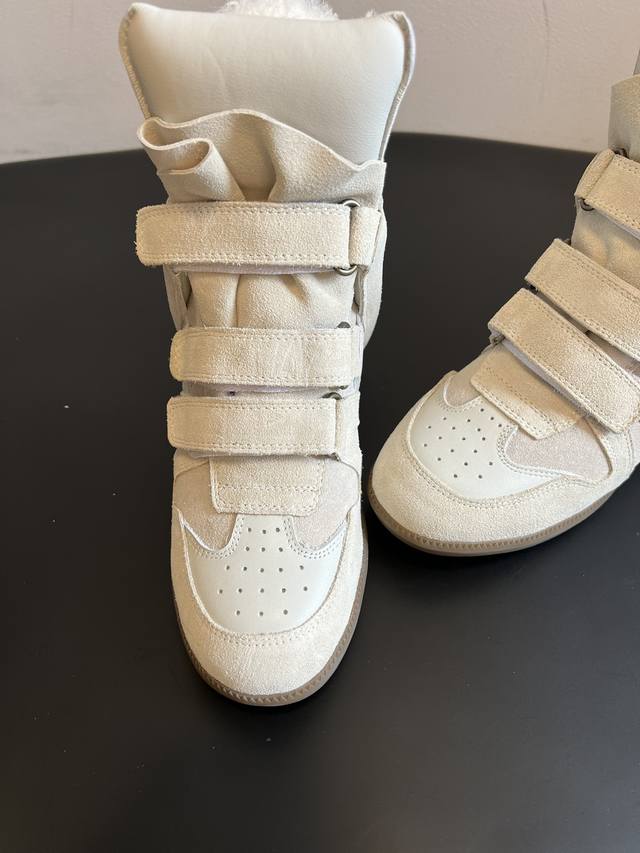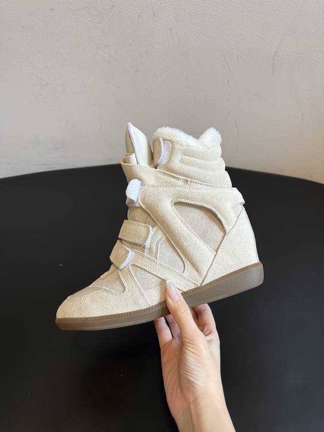 顶级品质 DDD Isabel Maran*楔形增高加绒运动鞋 DDD 自带7Cm隐形楔形鞋跟,悄悄拉长腿型,同时保持运动鞋的舒适步态,不会像高跟鞋那样累脚。常用麂皮+皮革拼接,质感高级;图中款式还加了毛绒内里,适合秋冬保暖。 DDD 高帮廓形+多道魔术贴绑带,设计辨识度高,既有运动休闲感,又带点酷飒的法式松弛感。能适配牛仔裤、连衣裙、Leggings等多种风格,是兼具增高、舒适、时髦的“万金油”单品。 DDD 鞋面:牛反绒 DDD 内里:羊毛 DDD 大底:橡胶大底 DDD 增高:7Cm DDD Siz