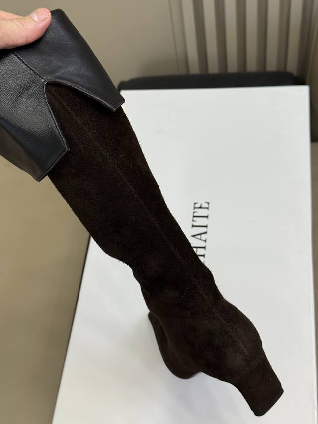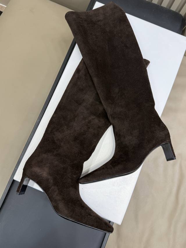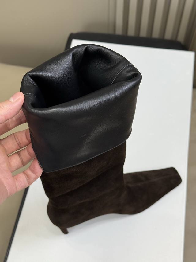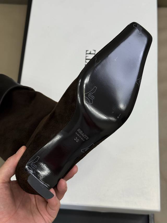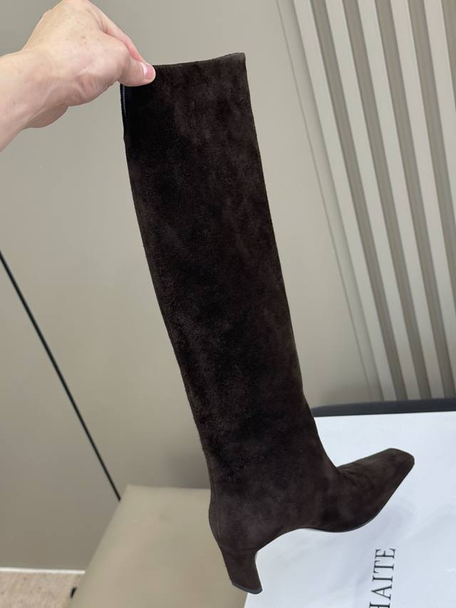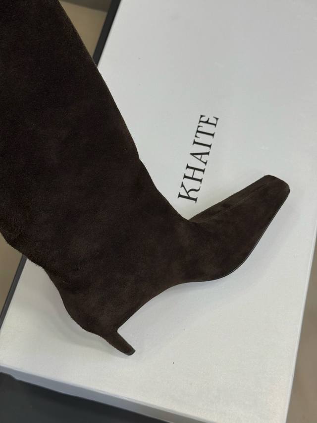 顶级品质 Khaite 2025秋冬新品 超显贵又显瘦的肯豆超模靴 这是一双不管从皮料 还是剪裁工艺上 都相当高定的一款超模靴 上脚穿都是很显瘦的 微直筒的鞋楦