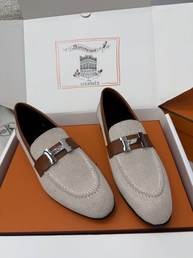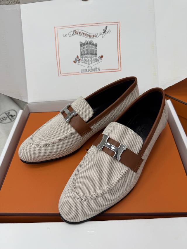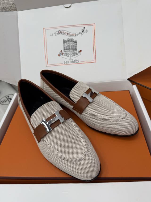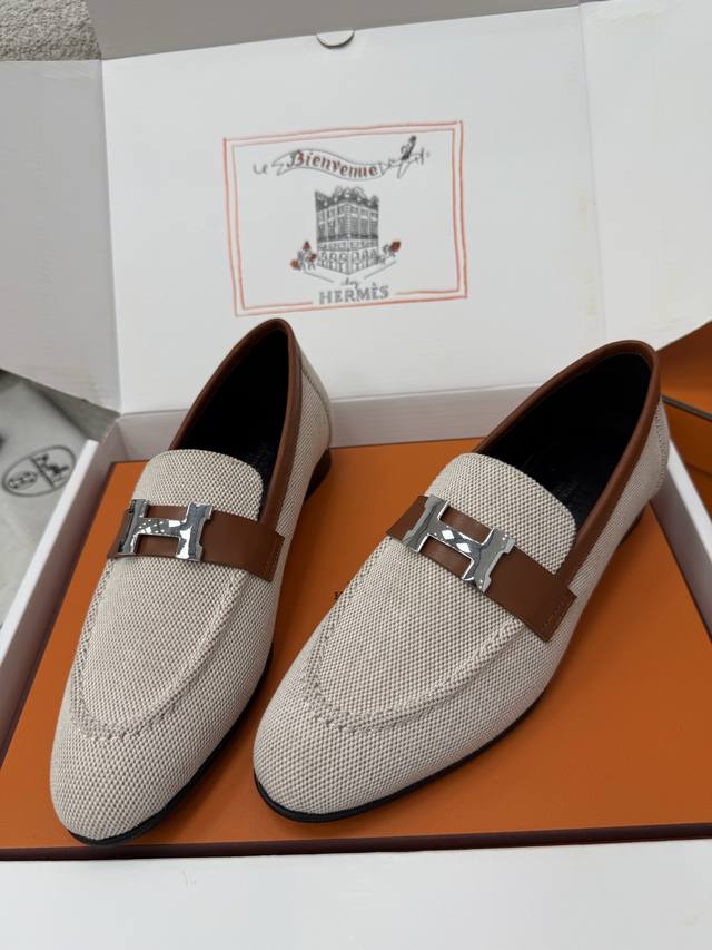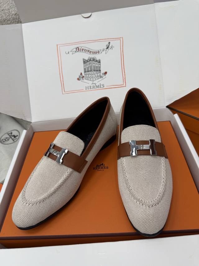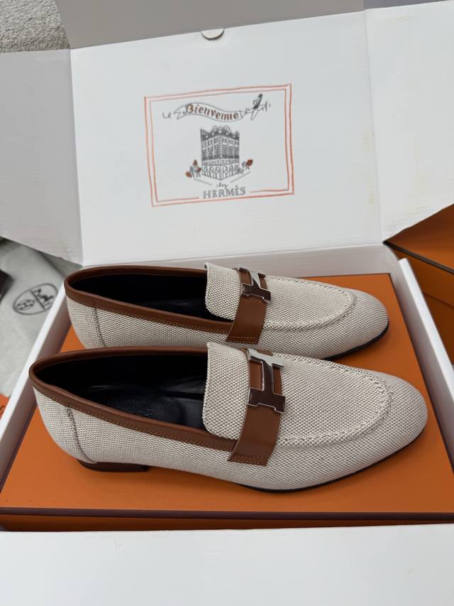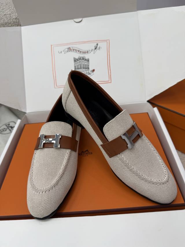 顶级品质 DDD * paris复古H扣乐福鞋|原版购入代购级别 DDD -榇色帆布 DDD 材质与工艺: DDD 原版定制金棕色帆布+配皮 DDD 羊皮内衬 DDD 鞋面饰有标志性H金属扣 DDD 意大利真皮大底 DDD 2.5Cm鞋跟 DDD Size:35-39 40、41、42定制不退换 DDD