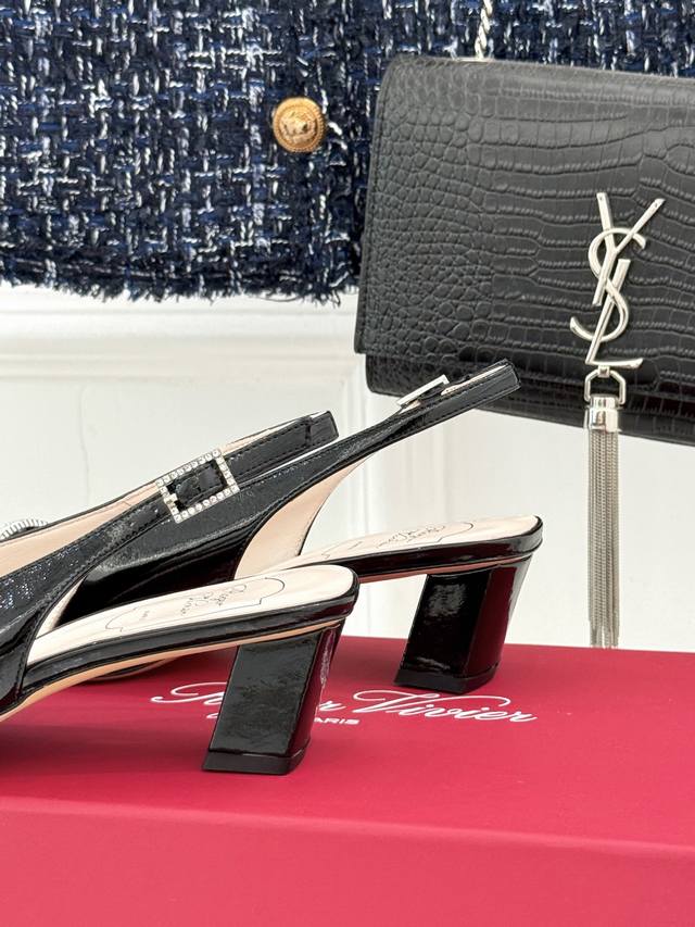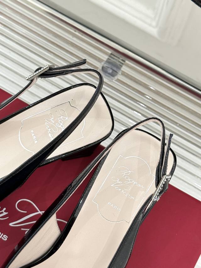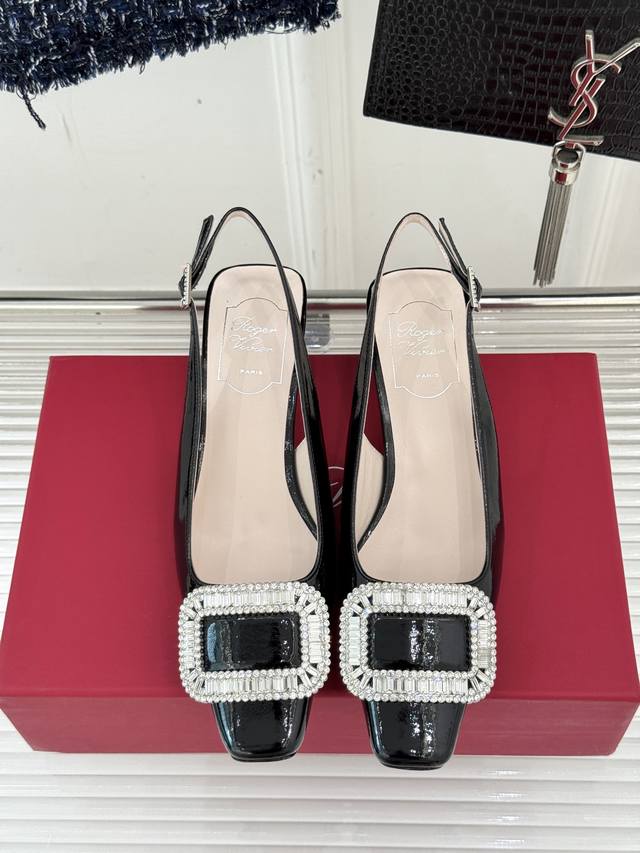 顶级品质Rv经典水钻大方扣粗跟后空凉鞋经典水钻方扣设计自带高光滤镜 钻扣在光下Blingbling面料采用原版定制漆皮内里垫脚均为混种羊皮意大利进口牛皮大底Si