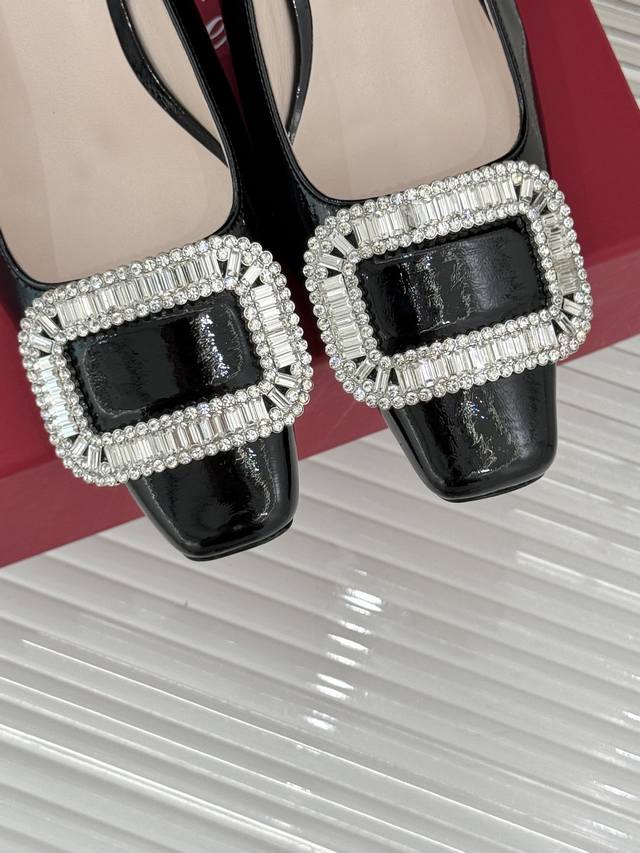 / 顶级品质Rv经典水钻大方扣粗跟后空凉鞋经典水钻方扣设计自带高光滤镜 钻扣在光下Blingbling面料采用原版定制漆皮内里垫脚均为混种羊皮意大利进口牛皮大底Si