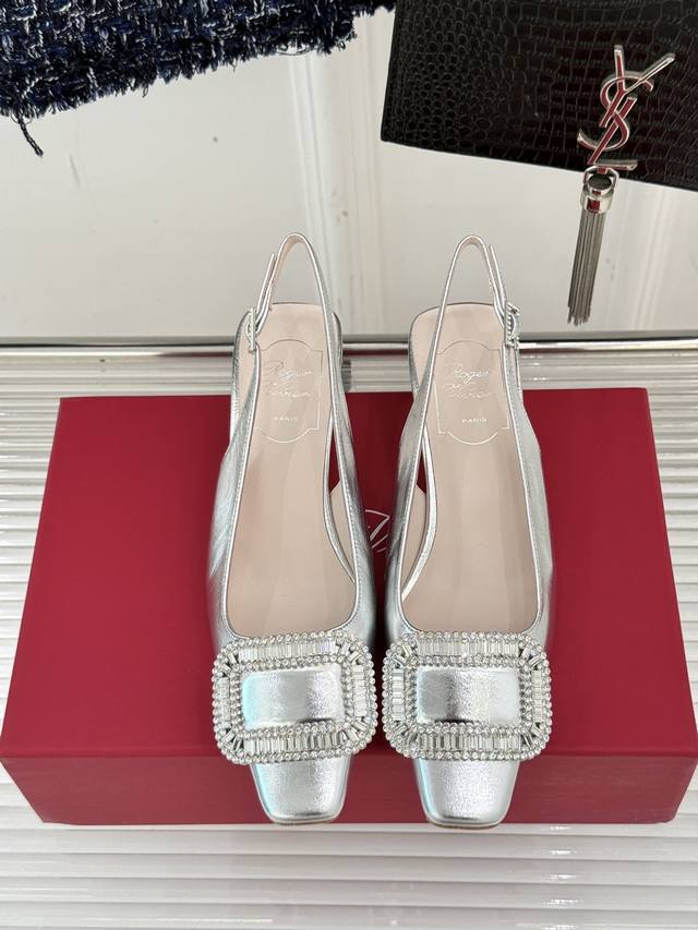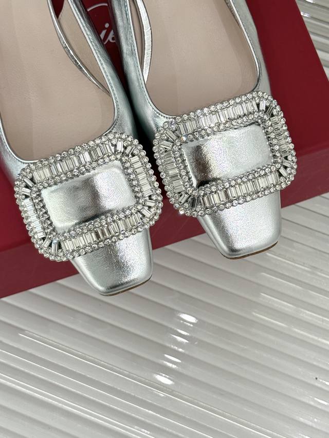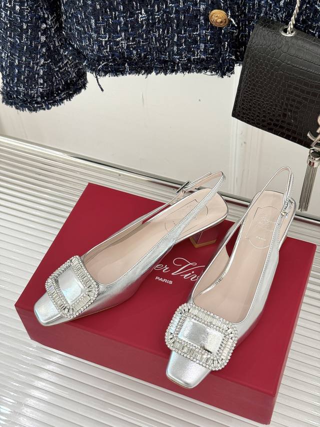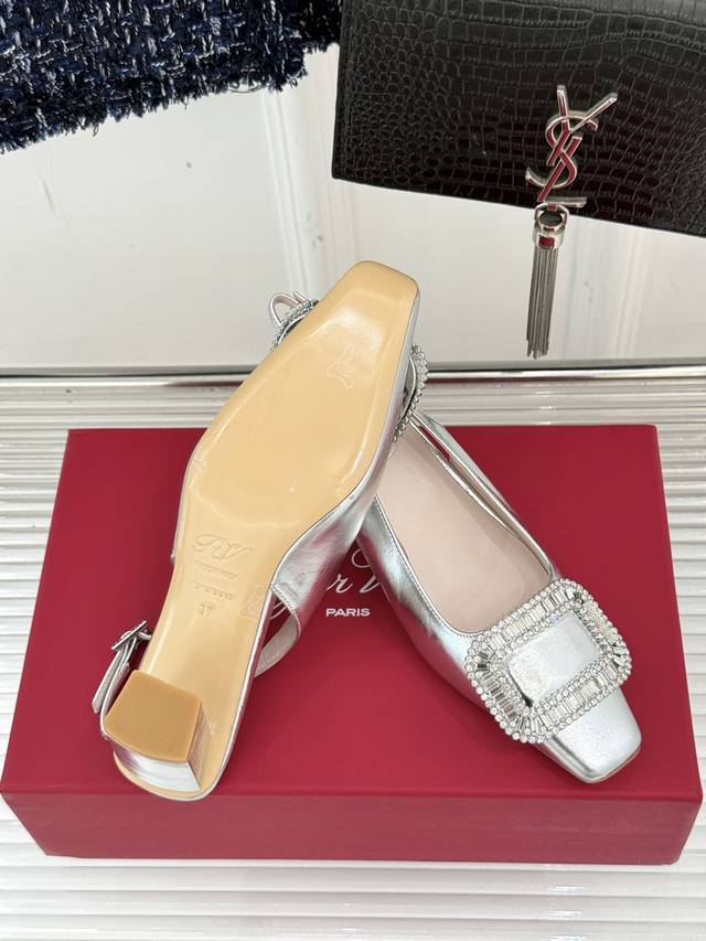顶级品质Rv经典水钻大方扣粗跟后空凉鞋经典水钻方扣设计自带高光滤镜 钻扣在光下Blingbling面料采用原版定制牛皮内里垫脚均为混种羊皮意大利进口牛皮大底Si