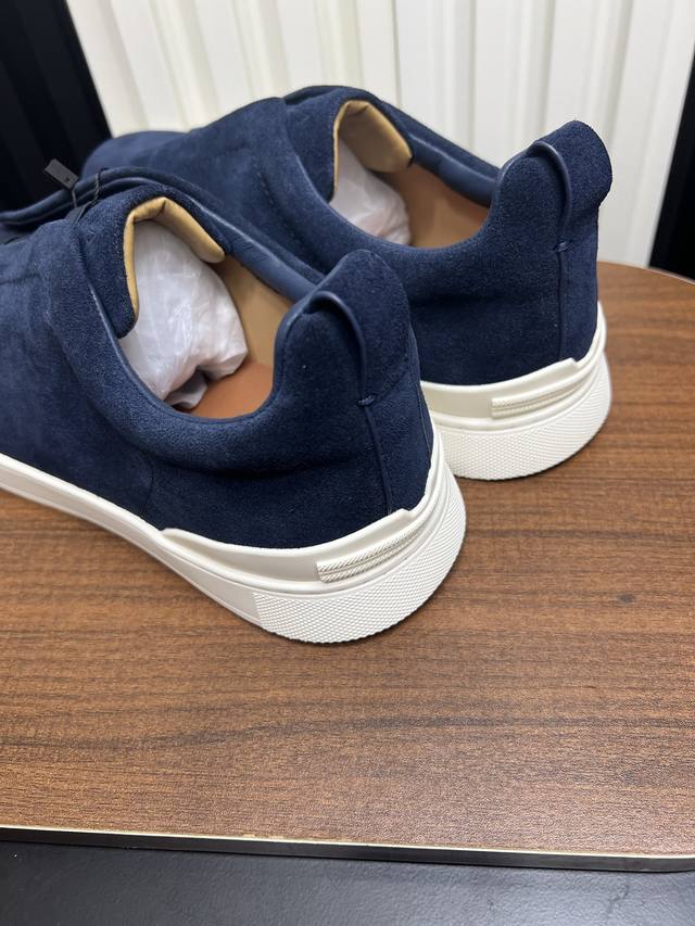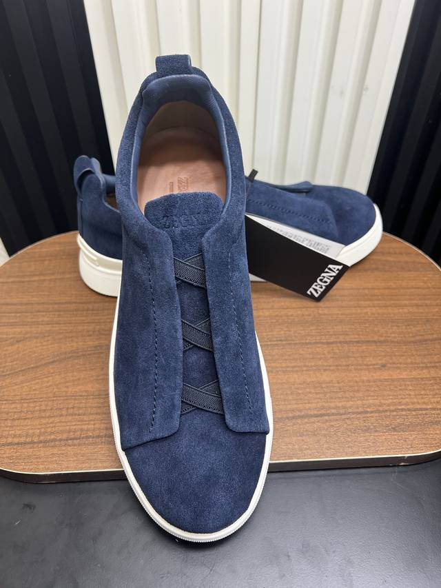 顶级版本,出厂价pp: DDD Zegna 杰尼亚 Secondskin Triple Stitch 休闲运动鞋,深棕小牛皮,原版发泡轻底 DDD 这款低帮运动鞋的鞋面光滑柔软。饰以标志性三重交叉松紧细节,致敬品牌精裁夹克的手工缝制工艺。设计轻盈,与白色橡胶鞋底相得益彰,专为快节奏的生活方式打造。这款鞋汲取手套制作灵感,融汇世代工匠经验智慧,选用新西兰顶级小牛皮制作,成就轻盈质地,精致衬里结合非凡韧性。带来独一无二的贴合感。非常轻盈的橡胶外底上点缀双条纹 Logo 运动细节,以超轻结构重新诠释标志性鞋款。