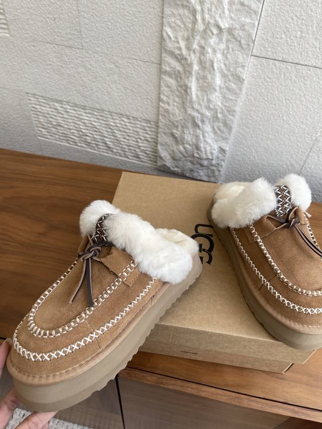 顶级版本:包头拖 高帮 短靴260 Ugg 25Ss 秋季新款 Classic Novelty经典超新奇 阿尔派款 懒人拖 短靴 雪地靴 Ugg这款Classic Novelty经典超新奇 阿尔派款,牛剖层翻毛皮,约17毫米Uggplush里衬、鞋垫,鞋口毛绒里衬,约17毫米羊皮毛鞋领内衬,茸软保暖,装饰缝线,Ugg穗带拉扣,时髦复古。 面料:防水牛反绒 内里 垫脚:真羊毛 大底:原版Eva大底 Size:35-40 40定做不退换