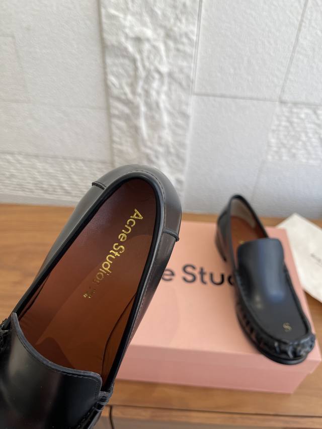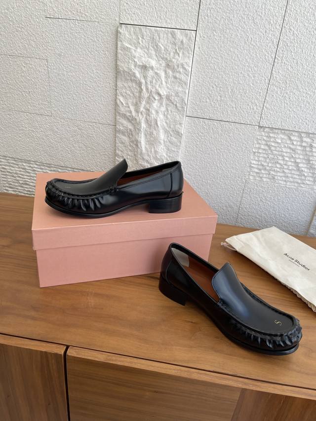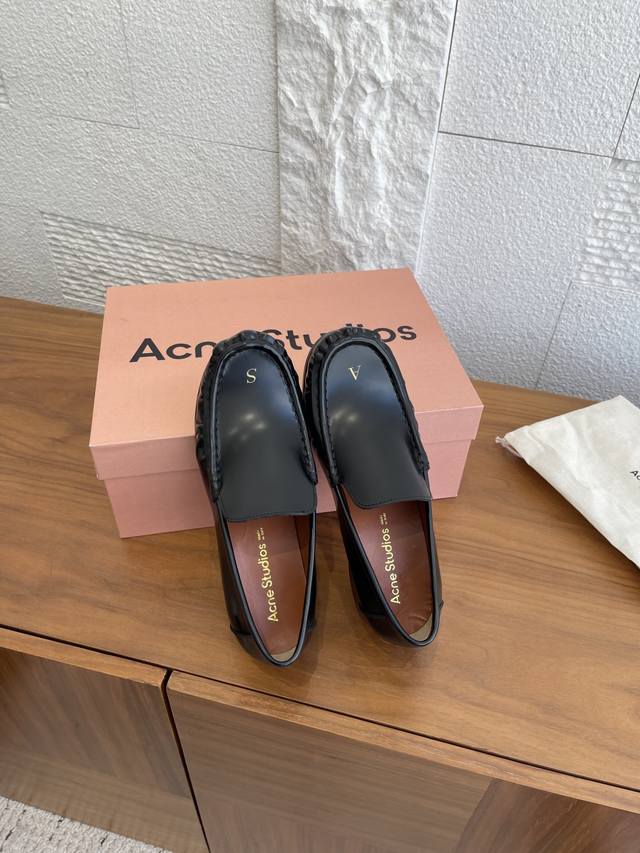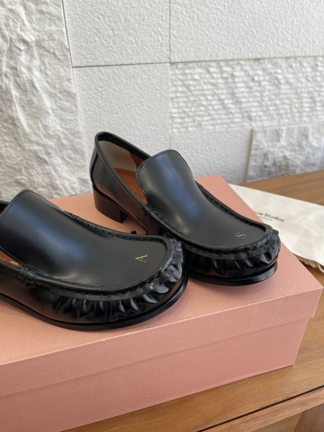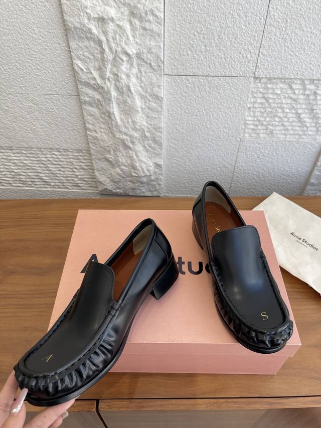 顶级版本:女 男 DDD Acne Studios 25Ss 秋冬新款 情侣款 字母徽标 褶皱 乐福鞋 DDD Acne Studios Boafer Light Loafer乐福鞋,选用优质牛皮,鞋头烫金“As”字母,低调又有辨识度。圆头+微褶皱设计,复古又现代,搭西裤或休闲裤都很出彩。真皮鞋底柔软,建议贴底更耐磨。一脚蹬设计超方便,通勤休闲都能穿,男女同款,极简风格爱好者必入!日常护理记得用专业皮鞋油保养哦 DDD 面料:进口小牛皮开边珠 DDD 内里:进口牛皮 DDD 大底:意大利固特异工艺真皮大底