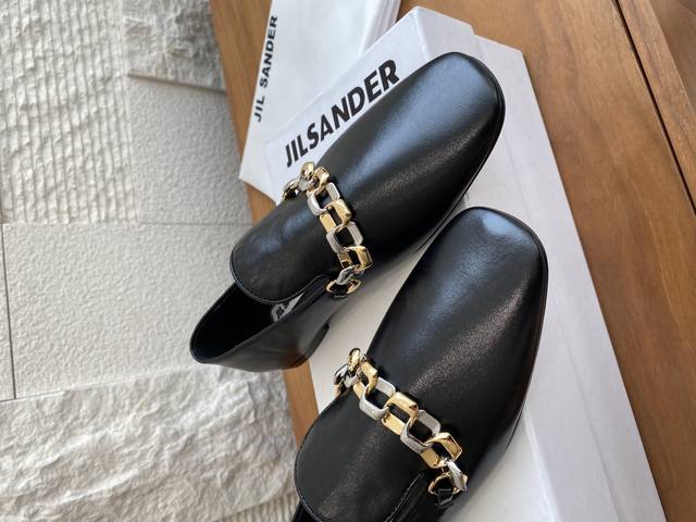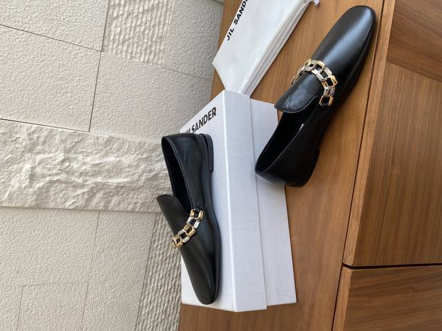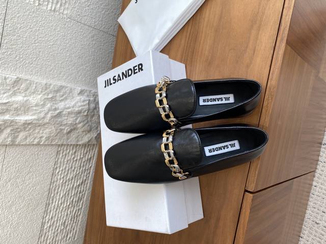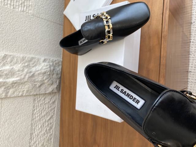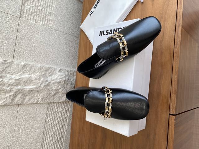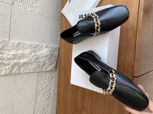 顶级版本:平底 高跟 Jil Sander 吉尔桑德 25Ss 双色链条 圆头 平底 高跟 乐福鞋 Jil Sander是极致奢华与现代简约的完美结晶。这款乐福鞋采用奢华小羊皮材质,饰以品牌精心设计的双色金属链条装饰,巧妙融合了经典乐福鞋的优雅与当代摩登气息。提供平底与高跟两种款式,满足不同场合与穿搭需求,在简约设计中透露出不容忽视的精致细节。 面料:进口小羊皮 进口麂皮 内里:进口山羊皮 大底:意大利进口真皮大底+注塑橡胶 跟高:平底,6.5Cm Size:35-41 40 41定做不退换