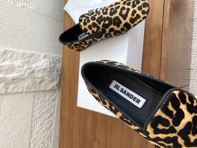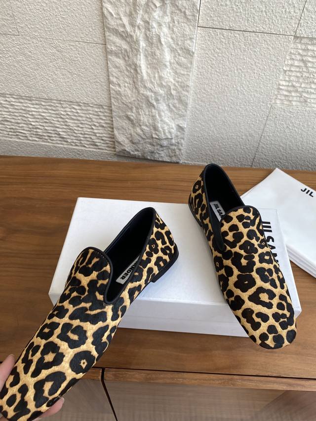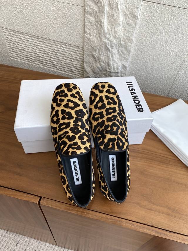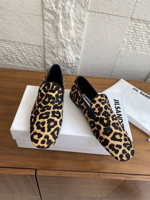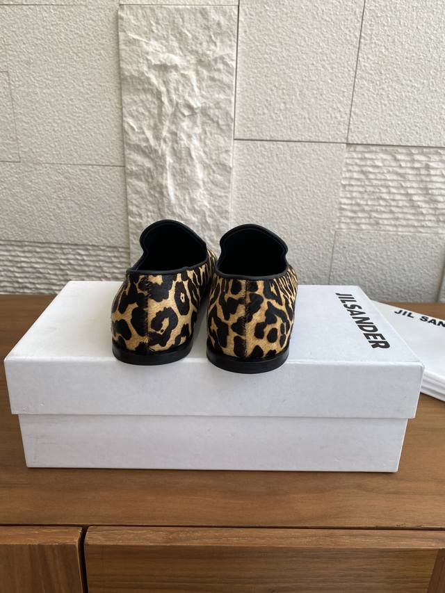 顶级版本:平底 高跟 Jil Sander 吉尔桑德 25Ss 圆头 豹纹 平底 高跟 乐福鞋 Jil Sander以独具匠心的设计语言,重新诠释经典豹纹元素。这款豹纹印花小牛皮乐福鞋,将野性魅力融入极简美学,通过精准的现代剪裁,打造出既具视觉张力又不失优雅的鞋履作品。平底与高跟两种选择,满足从日常通勤到时尚场合的全天候穿着需求。 面料:原版定制豹纹印花翻毛小牛皮 内里:进口山羊皮 大底:意大利进口真皮大底+注塑橡胶 跟高:平底,6.5Cm Size:35-41 40 41定做不退换