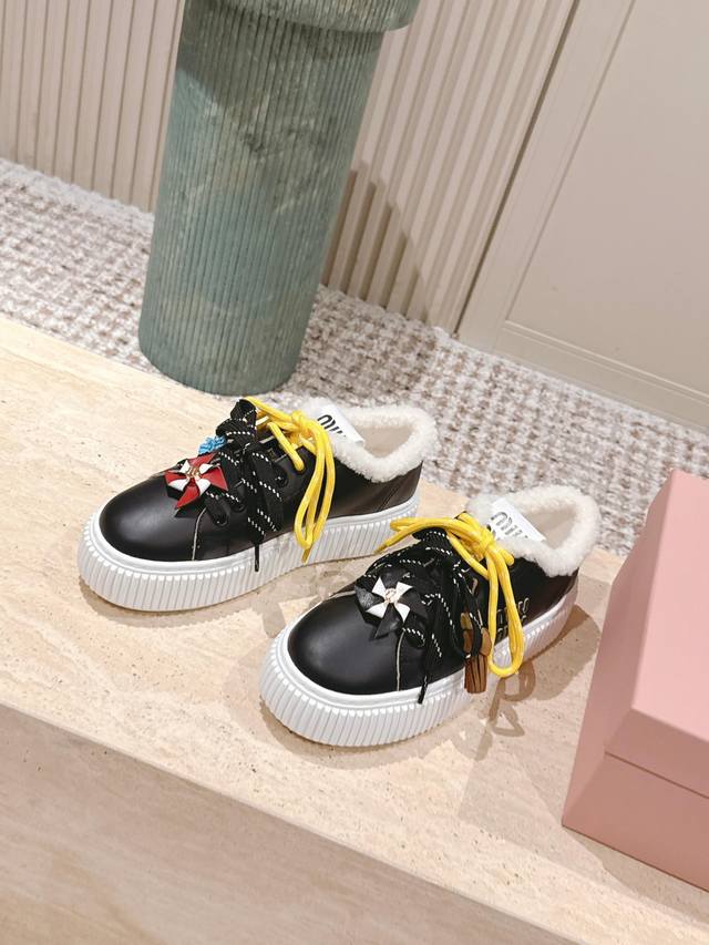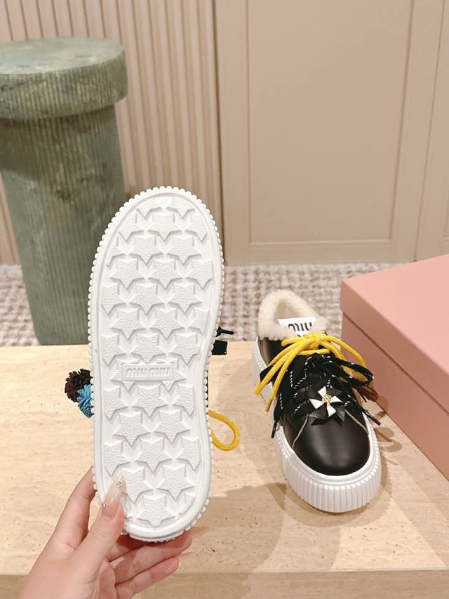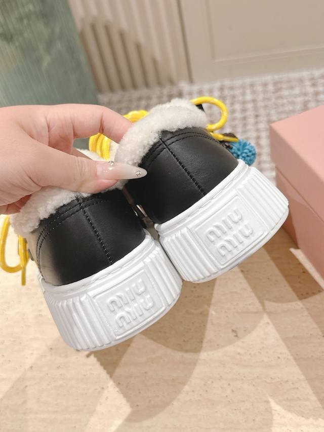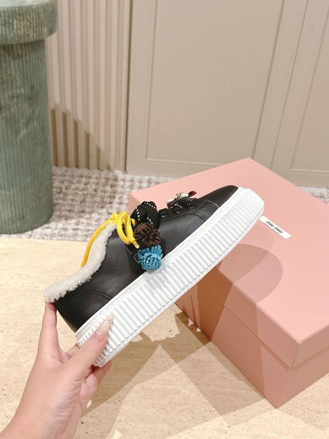 顶级版本:毛里 :Miu Miu Fw25 New Arrival~ DDD Miu家经典饼干鞋,搭配Miu系可爱小风车 小马尾配饰,焕发无敌可爱小巧思啊,一眼爱 DDD 擦色小牛皮 、麂皮鞋面都和秋冬好搭呀! DDD 羊毛内里版本,秋冬氛围感拉满,一整个爱住! DDD 轻松增高5Cm,配饰也可以随时拆卸! DDD 好看好看好看 DDD Size:35-41 DDD