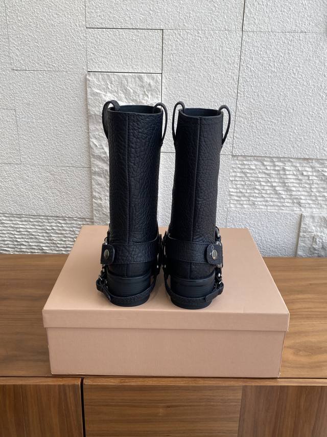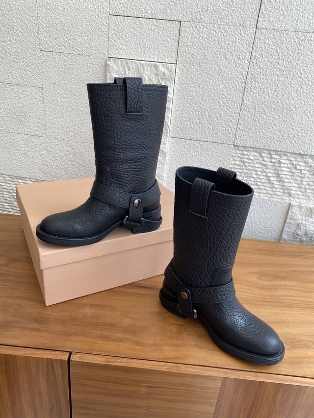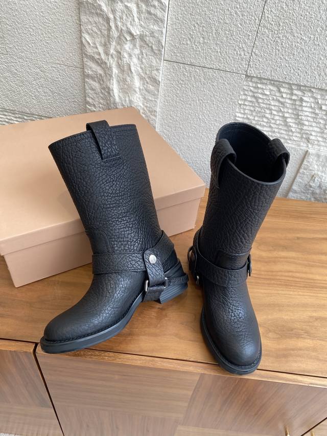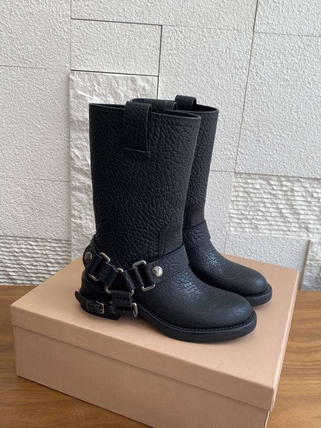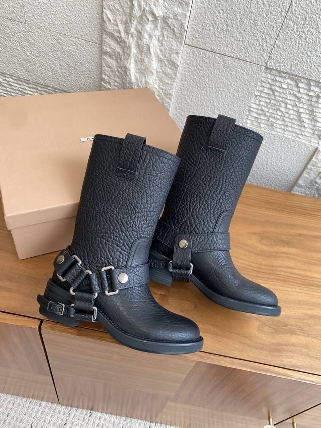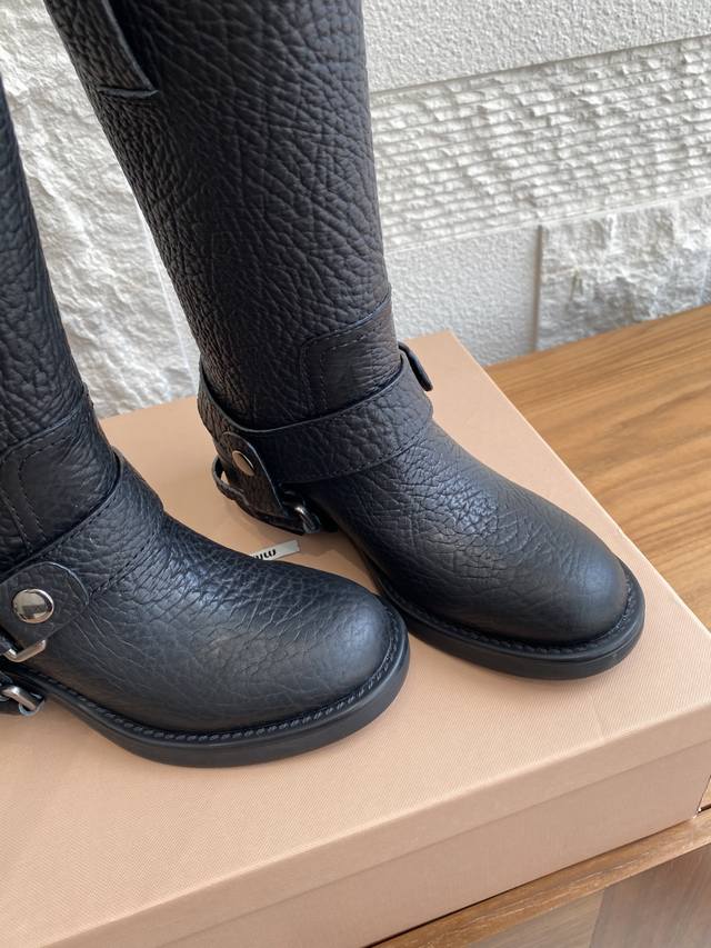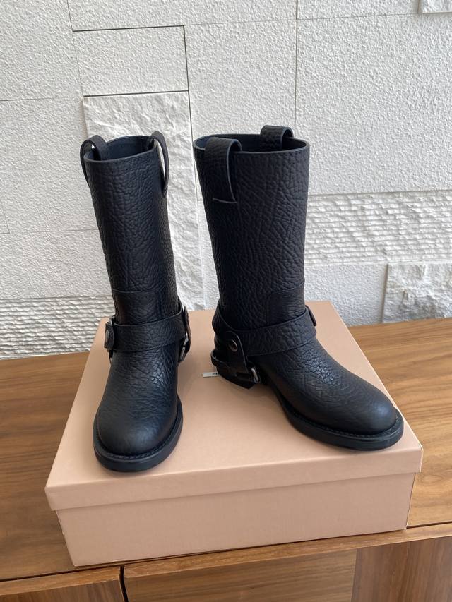 顶级版本:短靴 长靴 Miu Miu 缪缪 25Ss 秋冬新款 复古 圆头 厚底 骑士靴 机车靴 当机车引擎的轰鸣撞上蜀绣的针脚,这双靴便诞生于工业野性与手作温存的交汇处,甜酷风和复古风都能轻松拿捏,尤其是靴筒高度刚好,非常软巨好穿 脚感超赞 靴筒宽大 不管腿粗脚细都能穿出宽松感而且非常显腿直,对各种腿形的姐妹都很友好,能够很好地修饰腿形,拉长腿部线条谁穿鞋是大长腿美女! 面料:原版进口小牛皮鸵鸟纹 内里:原版定制羊皮 大底:原版开模防滑大底 Size:35-40 40定做不退换