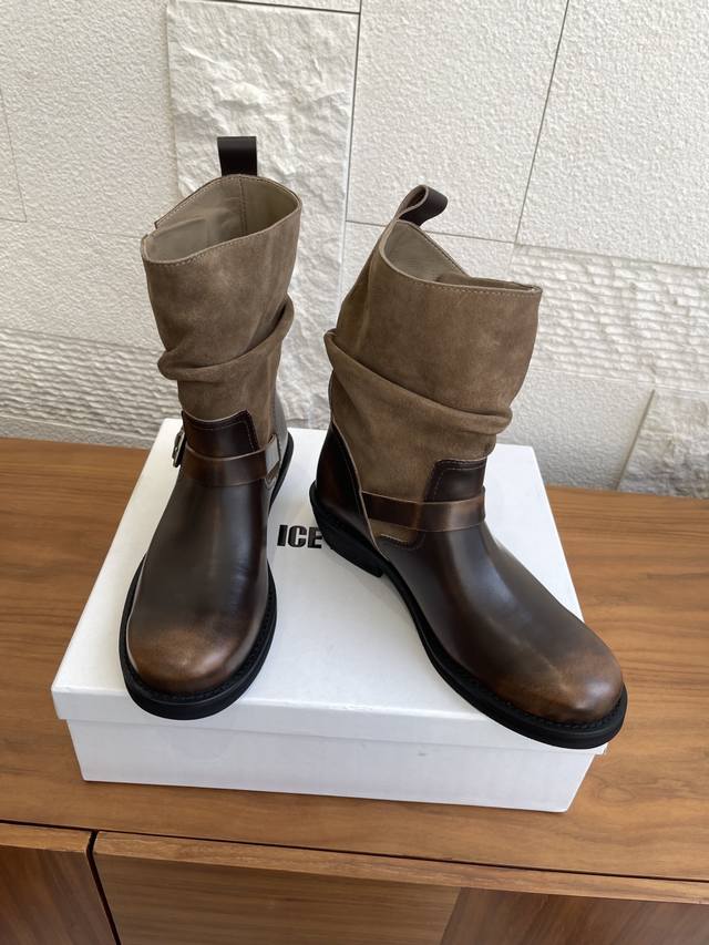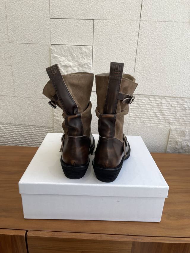 顶级版本:短靴 长靴690 Ice Dust 25Pf 早秋新款 做旧擦色 巴恩风复古西部堆堆靴 Ice Dust这款短长靴,妥妥的西部风代表,靴筒上不同材质拼接,麂皮与皮革碰撞出独特质感两条皮带扣设计,不仅增加了层次感 还满满的复古味道 不管是搭牛仔短裤露出大长腿还是配上长裙营造氛围感,都超有范儿穿上,你就是街头最酷的那个“西部牛仔女郎” 面料:原版头层牛皮 麂皮 内里:进口牛皮 大底:原版开模橡胶大底 Size:35-41 40 41定做不退换